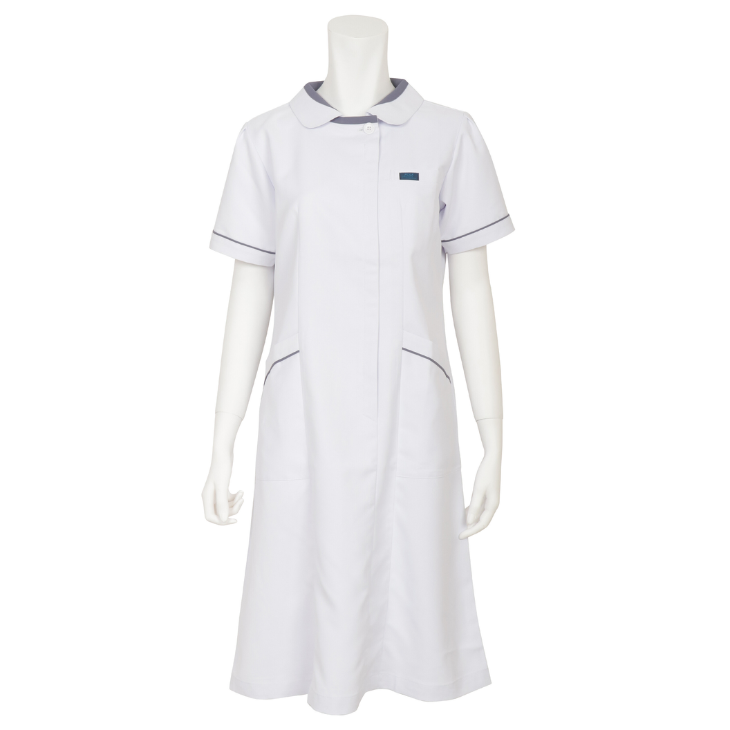 フェイスラインがすっきり見え、汚れの目立ちにくいイージーケアも人気の定番ワンピースです。シンプルながら清潔感ある白と配色の組み合わせがおしゃれなデザイン。ポケットにはいろいろな使い方ができる便利なストラップ付きで機能面も満足。SEK制菌加工を施したワンピースなので、繊維上の黄色ぶどう球菌・肺炎桿菌・MRSAなどの増力を抑制してくれます。襟元の濃色は、引き締め効果の高いカラーがアクセントとなるワンピースです。