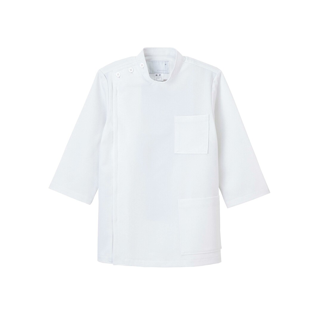 横掛けスタイルの基本型です。すっきりした前面はファスナー明きで、着脱が楽です。 ドクターウェアに適したしっかりした編組織です。高い伸縮性を持ち、着心地の良さと動きやすさを提供します。特殊仕上により吸水、防汚効果を付加しています。業務用洗濯にも耐えうる形態安定素材です。