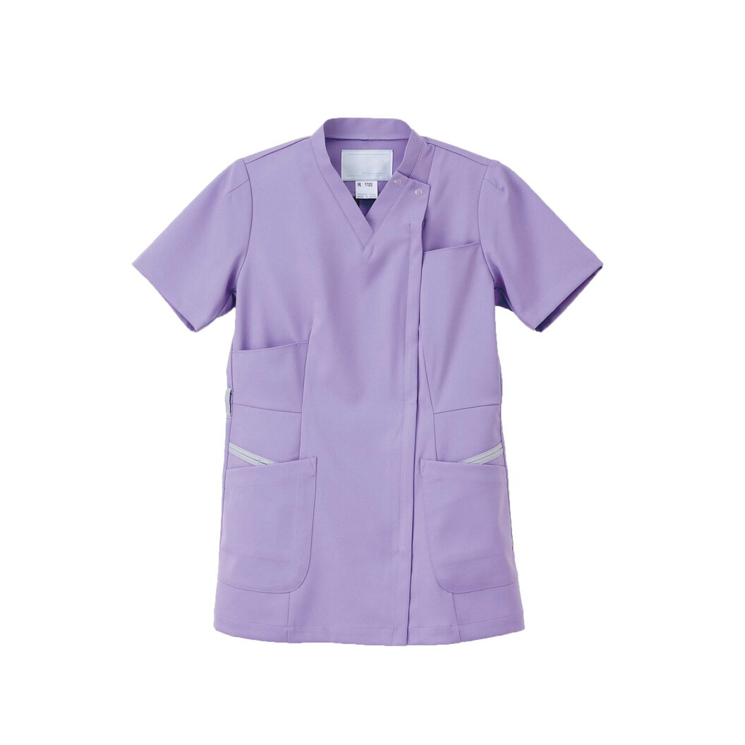 スクラブとチュニックを融合させた新しいスタイルです。ストレッチ性が優れた素材を使用することでの優れた運動機能性そして美しいシルエットを両立しています。 高級感が感じられる、深みのある色合いが特徴の素材です。ハイストレッチ糸により、極めて高い伸縮性があり、優しい着心地が得られます。異形断面糸により軽く、透けにくく、吸汗性に優れています。適度なハリコシがあり美しいシルエットを表現します。特殊仕上により制電、吸水、防汚効果を付加しています。業務用洗濯にも耐えうる形態安定素材です