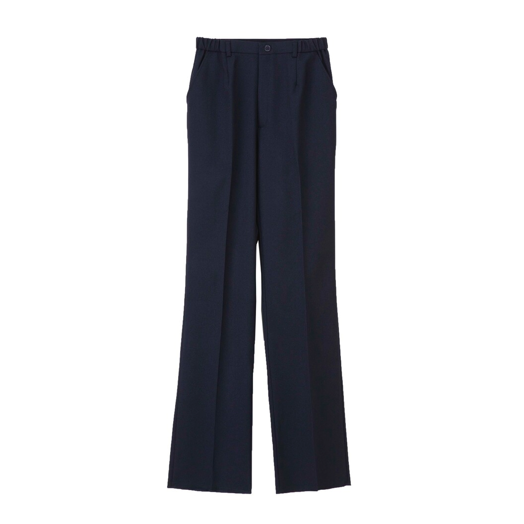 深い色合いと豊かなストレッチ性が美しさと動きやすさをもたらします。すっきりしたストレートシルエットの美脚パンツです。 高級感が感じられる、深みのある色合いが特徴の素材です。ハイストレッチ糸により、極めて高い伸縮性があり、優しい着心地が得られます。異形断面糸により軽く、透けにくく、吸汗性に優れています。適度なハリコシがあり美しいシルエットを表現します。特殊仕上により制電、吸水、防汚効果を付加しています。業務用洗濯にも耐えうる形態安定素材です