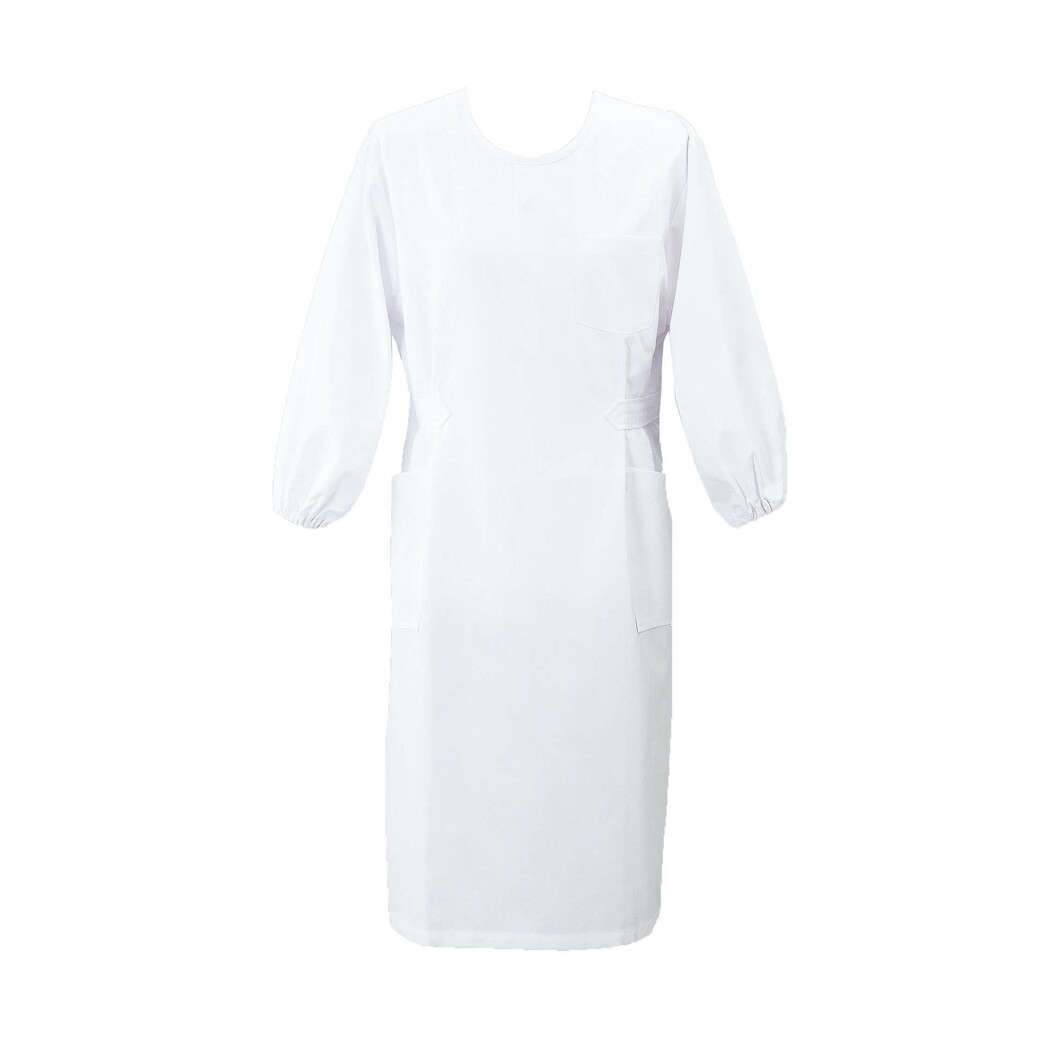 機能第一の予防衣に飾りベルトでウエストをおさえ、ボディラインを感じさせるおしゃれ感を盛り込みました。 再生ポリエステル糸を使用しているためグリーン購入法に対応できます。特殊プレス仕上げのため、洗濯後も美しい仕上がりが維持されます。特殊仕上により制電、吸水、防汚効果を付加しています。業務用洗濯にも耐えうる形態安定素材です。
