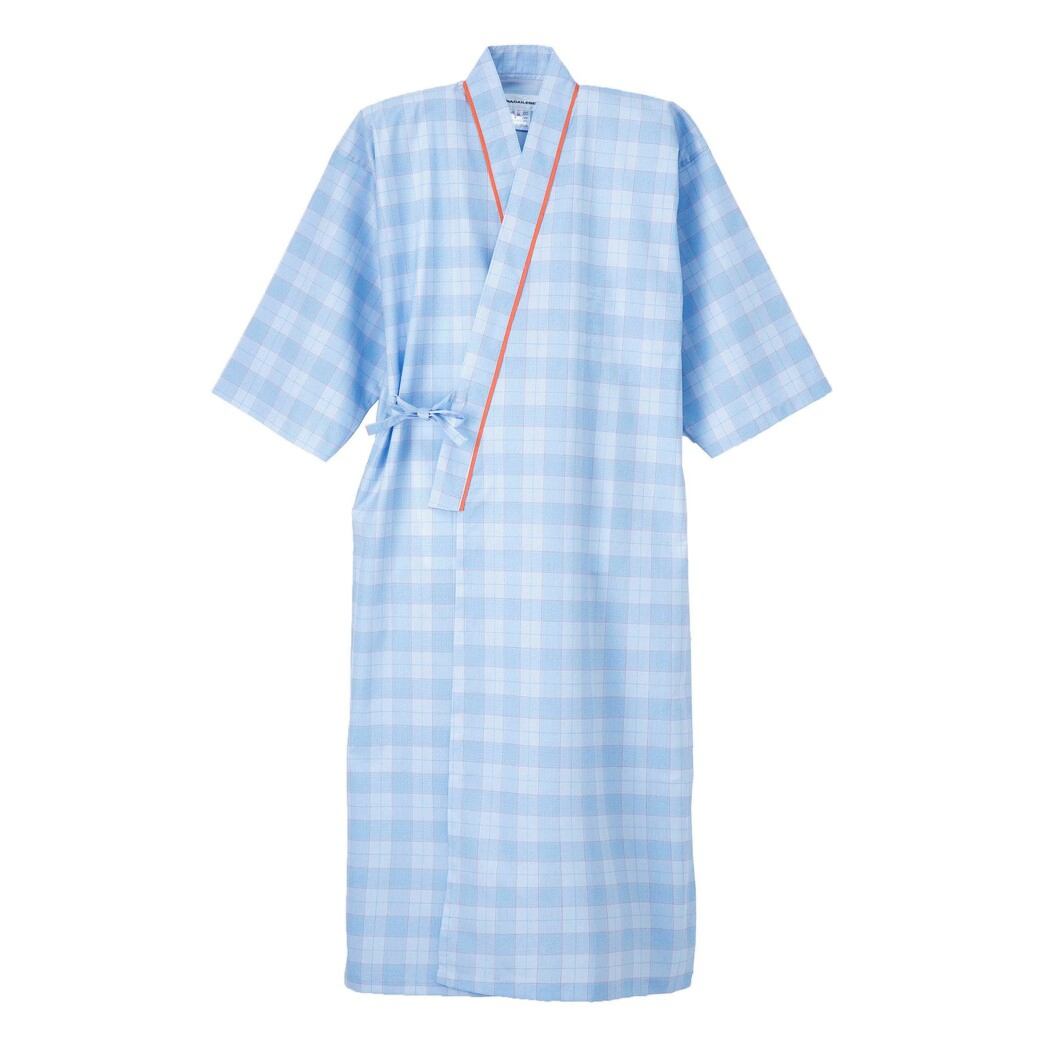 ゆったりと過ごせるよう、小さな工夫を施した、浴衣タイプの患者衣。上前と下前のひもの位置を変えてあるので、少々の動きでは前がはだけません。襟のラインはサイズごとに色を買え、一目瞭然に。 綿高混率のため吸水性に優れ、着心地が良い素材です。業務用洗濯にも耐えうる形態安定素材です。