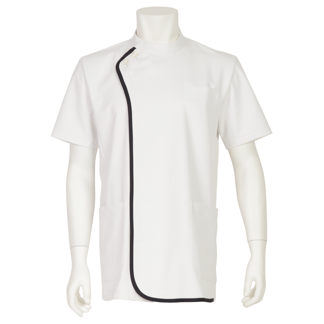 チーム医療をネイビーで表現したNEO NAVY(ネオネイビー)シリーズの一着。 生地は、防透性が高く程よくストレッチ性があり高級感のある織物素材です。 工業洗濯が可能で、静菌加工、スケ防止、吸汗性、静電性、ストレッチ性、防汚加工と、高い機能性も備えています。 ケーシータイプのジャケットです。開閉部分と背面ウエストのネイビーラインがデザインポイント。 左胸に携帯・PHSポケット付き。両腰ポケットのうち、右腰ポケットは内ポケット付き。比翼ファスナー仕様。 シンプルでスタイリッシュなジャケットをお探しの方におすすめな一着です。