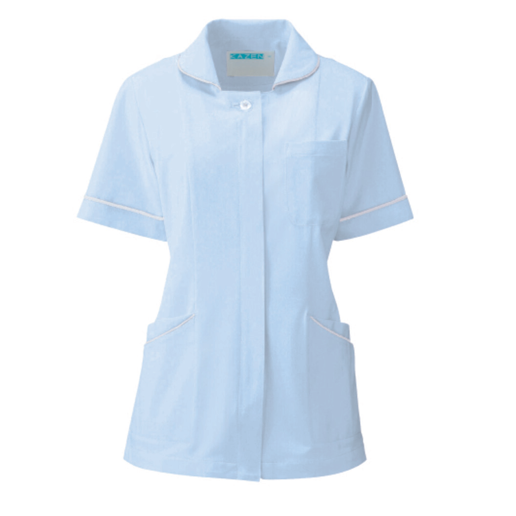 パイピングデザインシリーズです。 使用している生地は、裏綿で肌ざわりがやさしく、やわらかいニット素材です。 工業洗濯が可能で、静菌加工、スケ防止、吸汗性、静電性、ストレッチ性、防汚加工と、高い機能性も備えています。 丸衿がかわいらしくきちんと感があり、衿先、袖、両腰ポケットのパイピングがデザインポイント。 左胸に携帯・PHSポケット付き。両腰二重ポケット付き。 左腰ポケットに内ポケット付き。比翼ファスナー仕様。 背面両ウエストのベルトとボタンで、ウエストの調整ができます。 シンプルなジャケットをお探しの方におすすめな一着です。