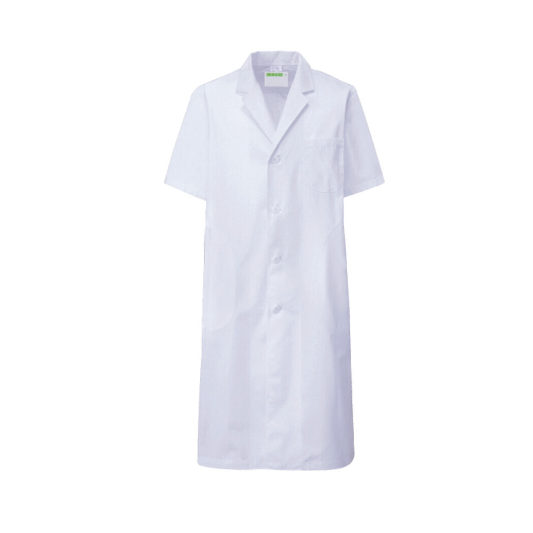 シングルのメンズ半袖診察衣です。 スタンダードなデザイン。 シルケット加工・防縮加工をほどこした織物素材ブロードを採用しました。 左胸、両腰ポケット付き。胸ポケット内にペン差し付き。 後ろ身頃センターベント入りで足さばきも軽快に。実用性も考慮しています。