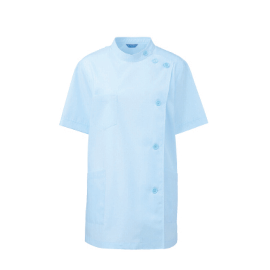 半袖のレディス医務衣です。 動きやすく、使いやすく、かつスマートに、プロの様々な要望に応える高機能ウェアです。 その安心感は、患者様とあなたを優しくつつみ込みます。