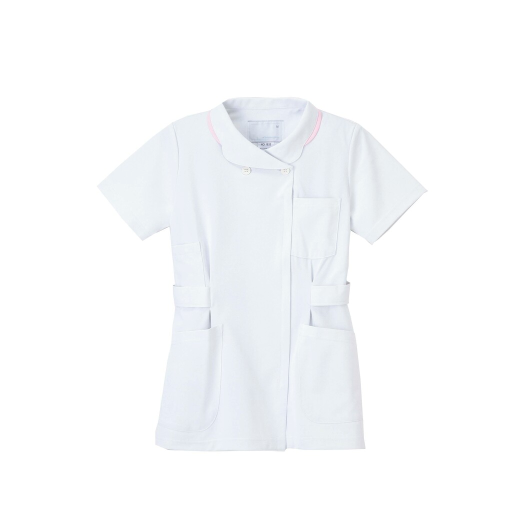 ヒップがバランス良く隠れる着丈でパンツスタイルが美しく見えます。優しく楽しい衿は病院内を居心地の良い雰囲気にします。右脇にPHS用のポケットが付いています。 光の透過性を抑えた高ランダム扁平断面糸(アレニエ)を使用することにより、高い防透性を実現しました。適度な伸縮性が動きやすさをもたらせています。特殊仕上により吸水、防汚効果を付加しています。業務用洗濯にも耐えうる形態安定素材です。