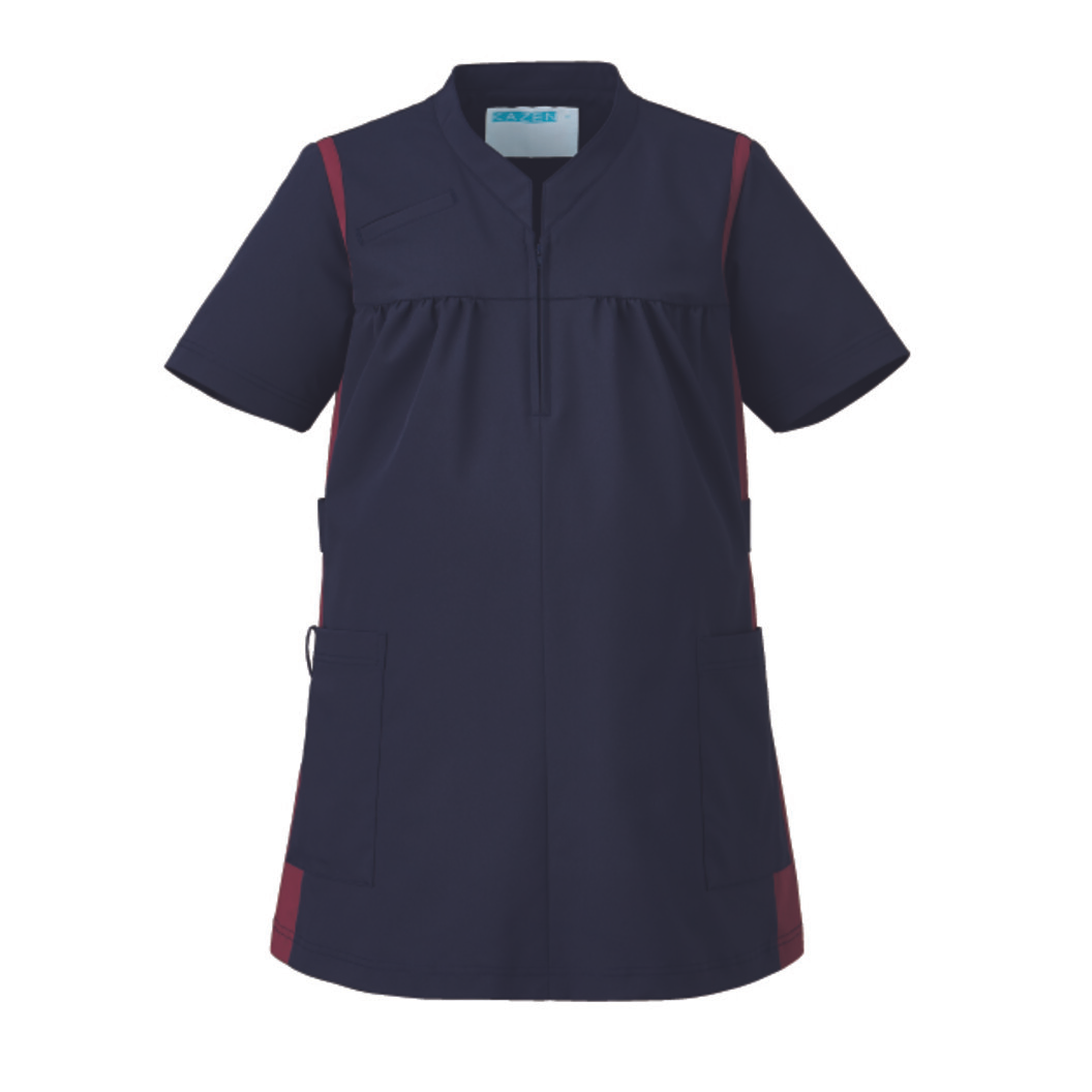 右胸に携帯・スマートフォン対応ポケット付き、右腰にループ付き、両腰ポケット二重仕様のマタニティスクラブです。