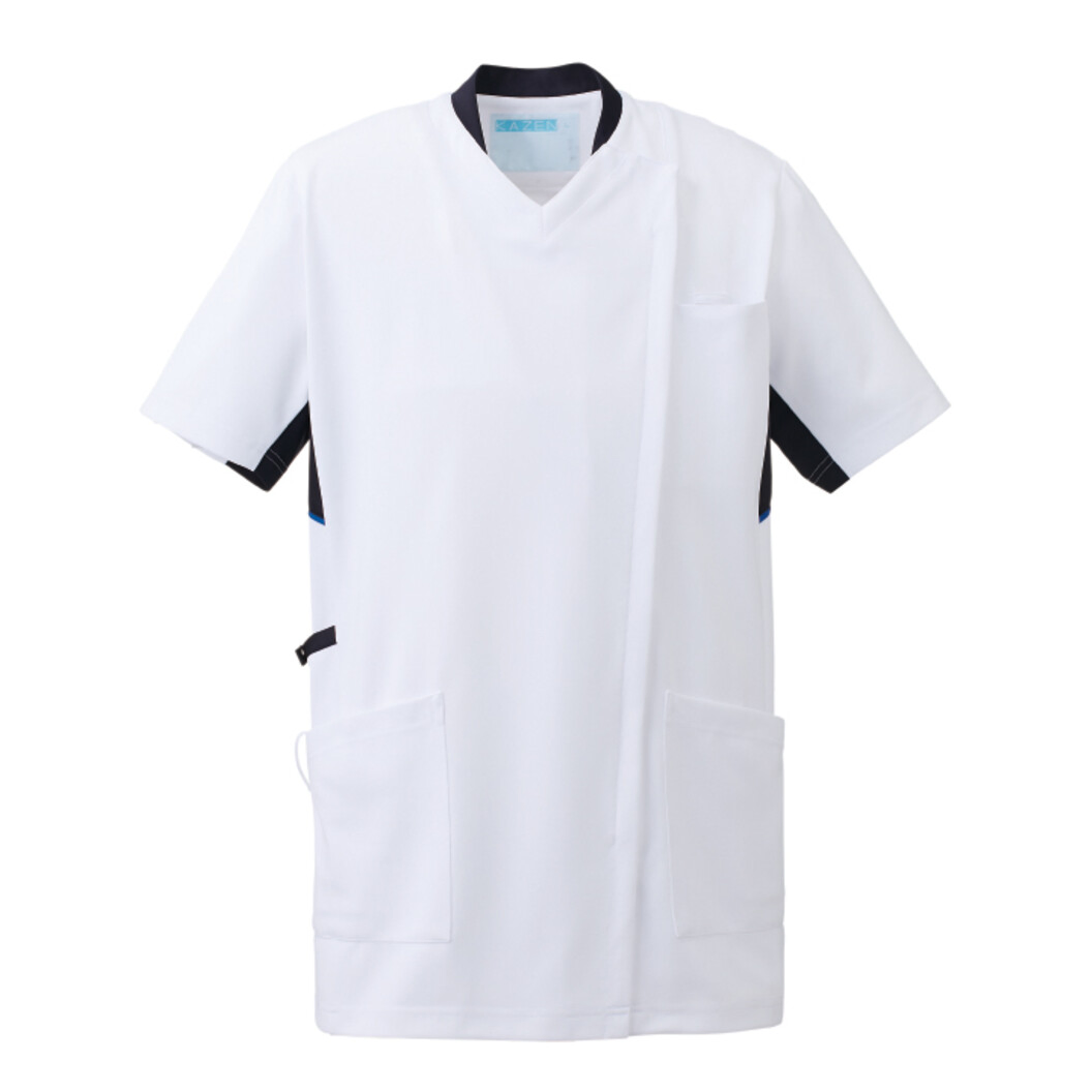 身体の動きにシンクロし、動いている時が最も美しい”4 DIMENSION MOTION CUTTING SYSTEM ”with LIEN 4D FITT動体裁断シリーズ。 動体裁断とは、スポーツウェアで多大な実績を誇る中澤研究室指導のもと、人体・皮膚の解剖分析と衣服理論の相乗化によって衣服の動きやすさを極限まで追及した、立体裁断をも超える画期的な「動体裁断」衣料設計システムのことです。 介助はストレスフリーで美しく、ハードな動きは疲れにくく、腕の上げ下げがスムーズで、長時間の作業も快適に着用いただけます。 使用している生地は、軽量でストレッチ性が高くシルエットのきれいさを引き立てるジャージーニット素材。 工業洗濯が可能で、静菌加工、スケ防止、吸汗性、静電性、ストレッチ性と、高い機能性も備えています。 衿、両袖下、両脇、右腰ループの配色がデザインポイント。 衿もとはかがんだ時に胸元が見えづらい仕様です。立ち衿で首にストラップをかけた時に首に当たりにくいです。 左胸に携帯・スマートフォン対応ポケット付き。左胸に名札ループ付き。右腰ポケットにループ付き。 右腰上部にループ付き箱ポケット付き。両腰ポケットにホコリがたまりにくい内スルーポケット付き。 両腰ポケットは聴診器が入る大きさです。比翼ファスナー仕様。 高機能なスクラブジャケットをお探しの方におすすめな一着です。