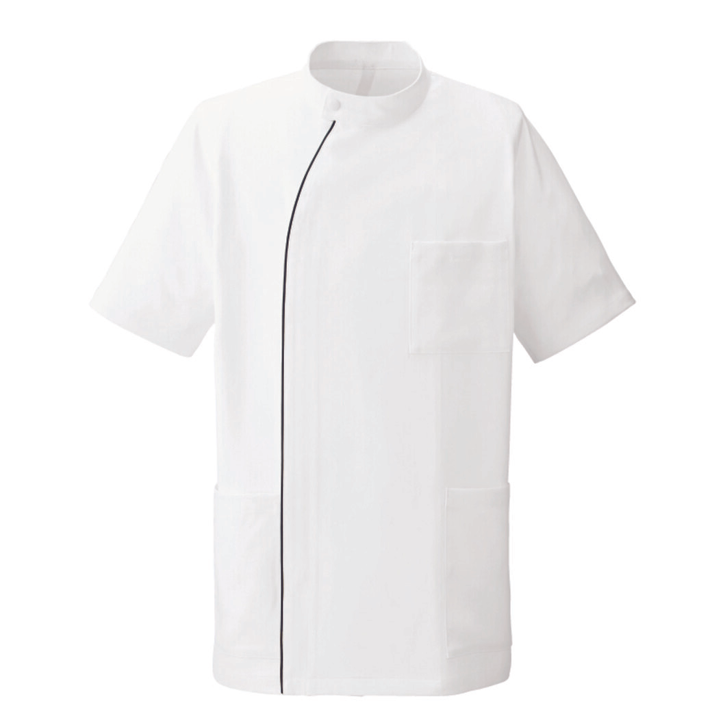右腰ポケットに内ポケット付き、右腰にループ付き、比翼ファスナー仕様の半袖メンズジャケットです。