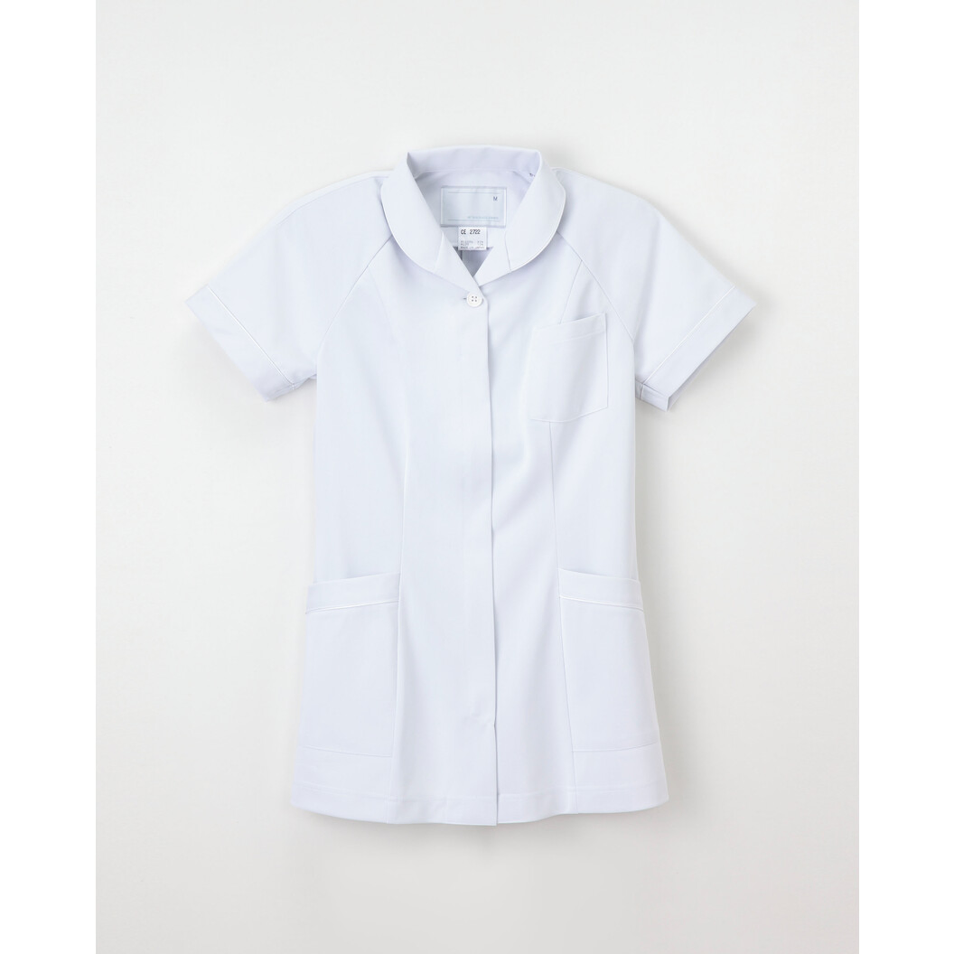 「ほっ」とするぬくもりの中に心地良さを感じるソフトな風合いの素材を生かした、高級感あふれるデザインです。やや襟元の下がった優しいショールカラーと、すっきりしたシルエットがポイントです。 肌側に高吸湿性能のキュプラを挿入し、肌触りがさわやかで優れた吸汗性、吸湿性のある素材です。光の透過性を抑えた、高ランダム扁平断面糸(アレニエ)を使用することにより、高い防透性を実現しました。適度な伸縮性が動きやすさをもたらせています。特殊仕上により吸水、防汚効果を付加しています。業務用洗濯にも耐えうる形態安定素材です。