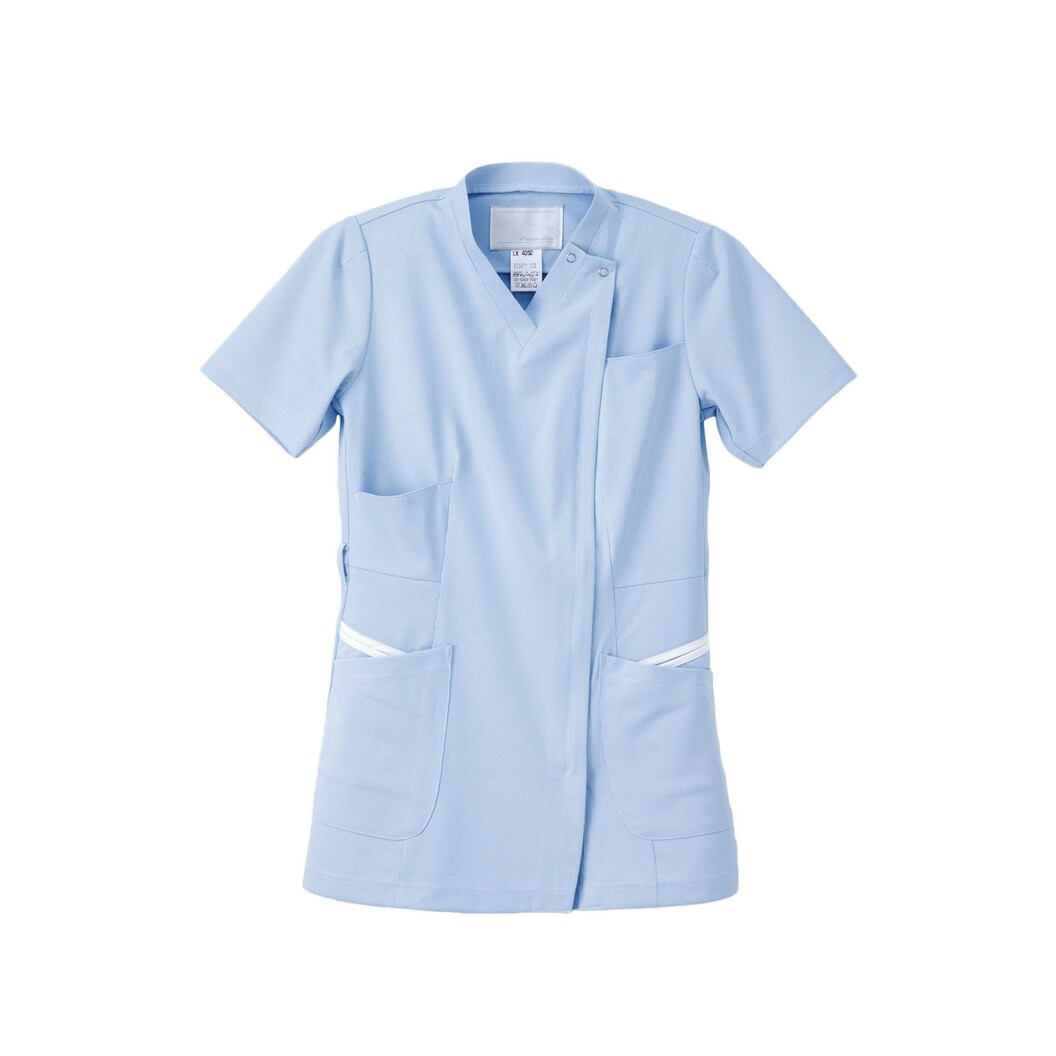 スクラブとチュニックを融合させたデザイン、そして新しいビタミンカラーをまとった新スタイルです。 透け防止フルダルポリエステル糸使いにより、極めて高い透け防止効果があります。極めて高いストレッチ性が有ります。特殊な糸使いにより、肌に触れるとヒヤっとする接触冷感素材です。ニット素材のため、通気性があり、防皺性にも優れています。洗濯耐久性のある制菌加工を施し、清潔で快適に着用していただけます。着用時のまとわりつきや、パチパチ放電を低減させるために制電糸を使用しています。業務用洗濯にも耐えうる形態安定素材です。