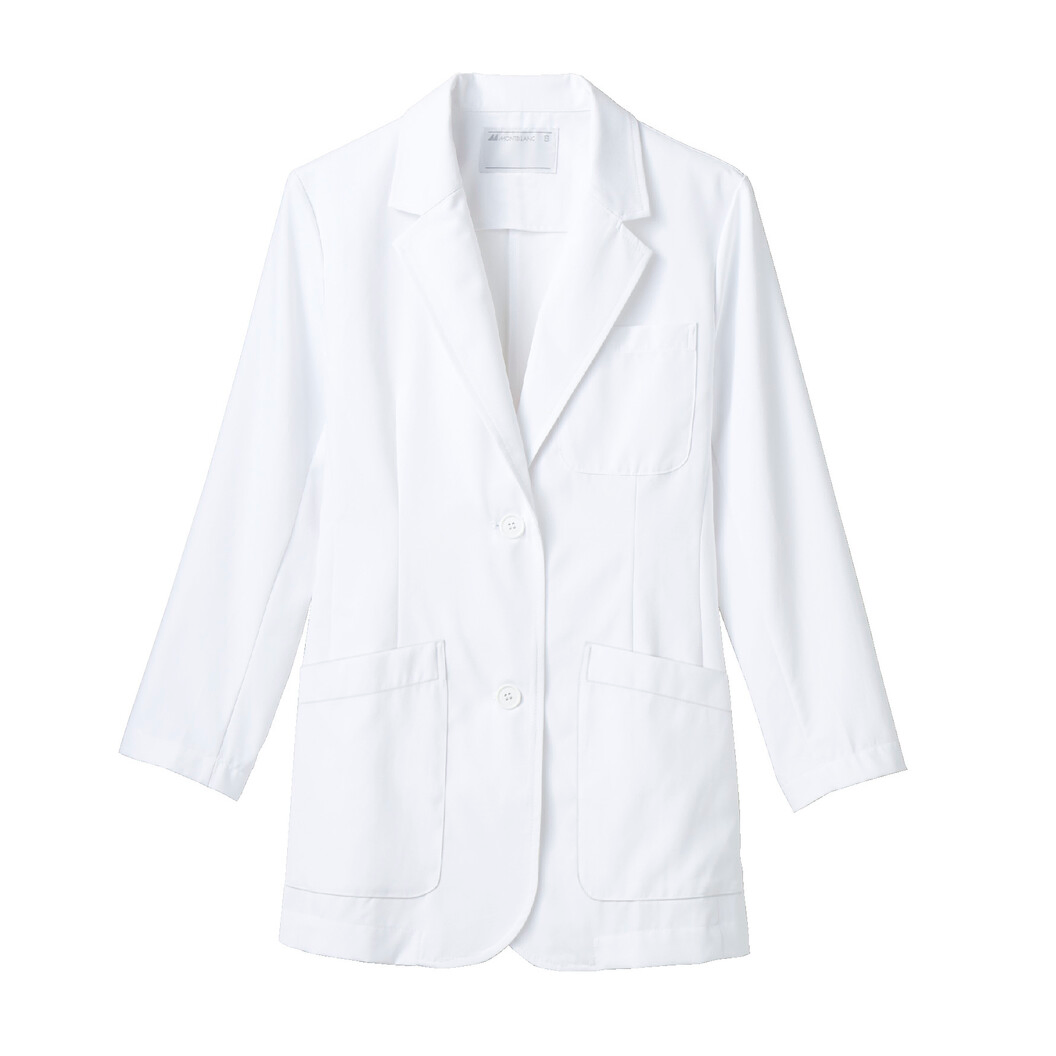 住商モンブランのブレザータイプのドクターコートです。 制菌・透け防止・制電・防汚加工を付与した、まとわりつかないスタンダードなドクターコートです。