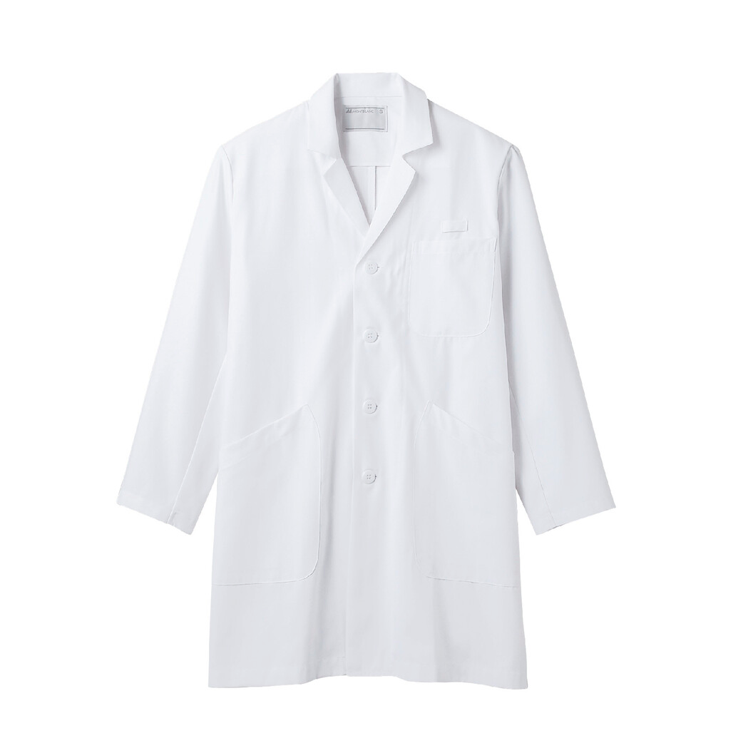 住商モンブランのドクターコートです。 制菌・透け防止・制電・防汚加工を付与した、まとわりつかないスタンダードなドクターコートです。