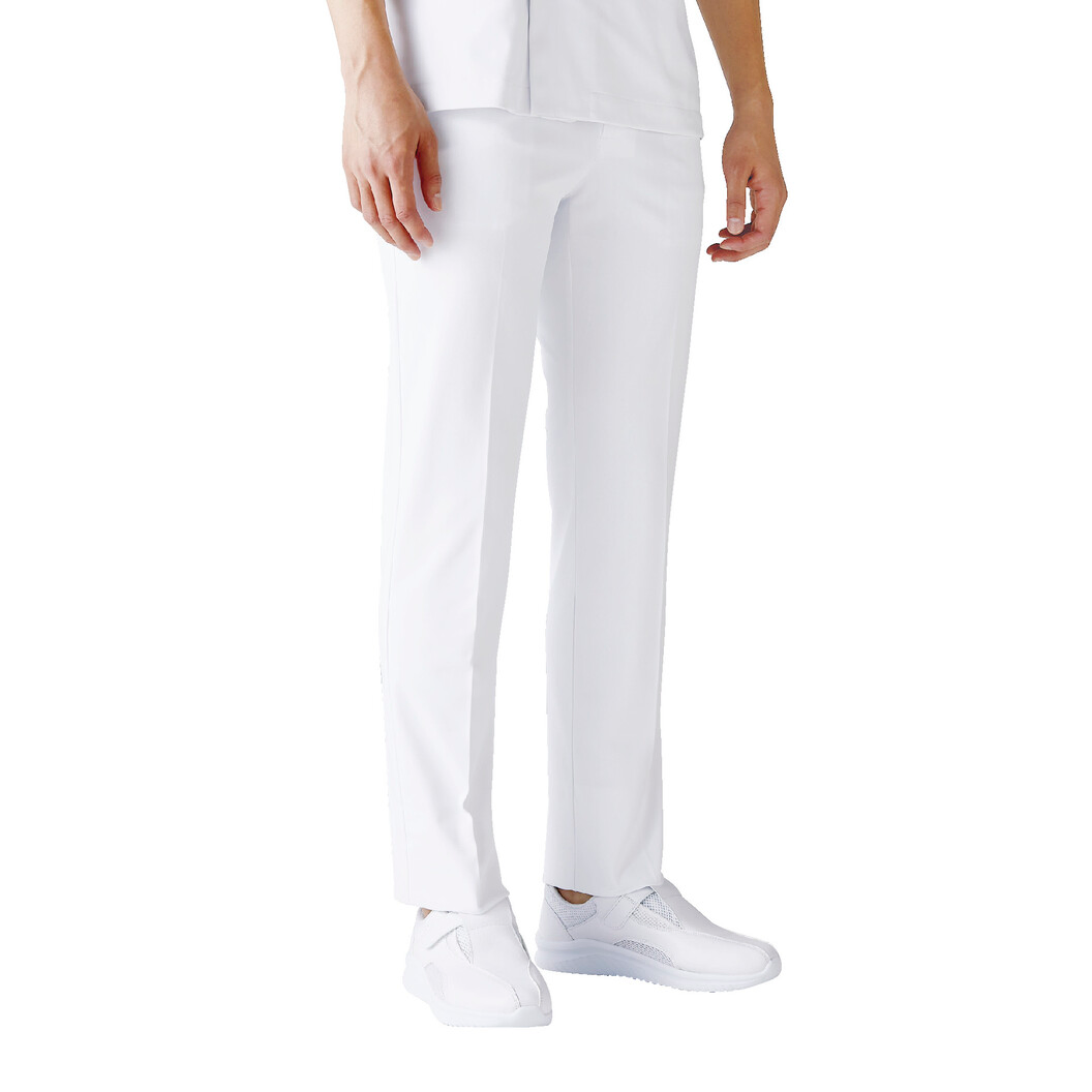 住商モンブランのメンズパンツです。 よく伸びるストレッチ素材でラクな履き心地です。 ノータックのやや細身シルエットは、脚長&スタイルアップ効果抜群です。 ほどよい股上の安定感のある履き心地で、ウエストは両脇ゴムでほどよくフィット。 フロントはファスナーで、ベルトループも付いています。 やわらかな肌ざわりの素材は、高度な制菌加工と防汚加工をダブルで搭載。 ヒップ部分に下着の透けを防ぐ裏地付きだから、安心して着用できます。両脇に便利なポケット付き。