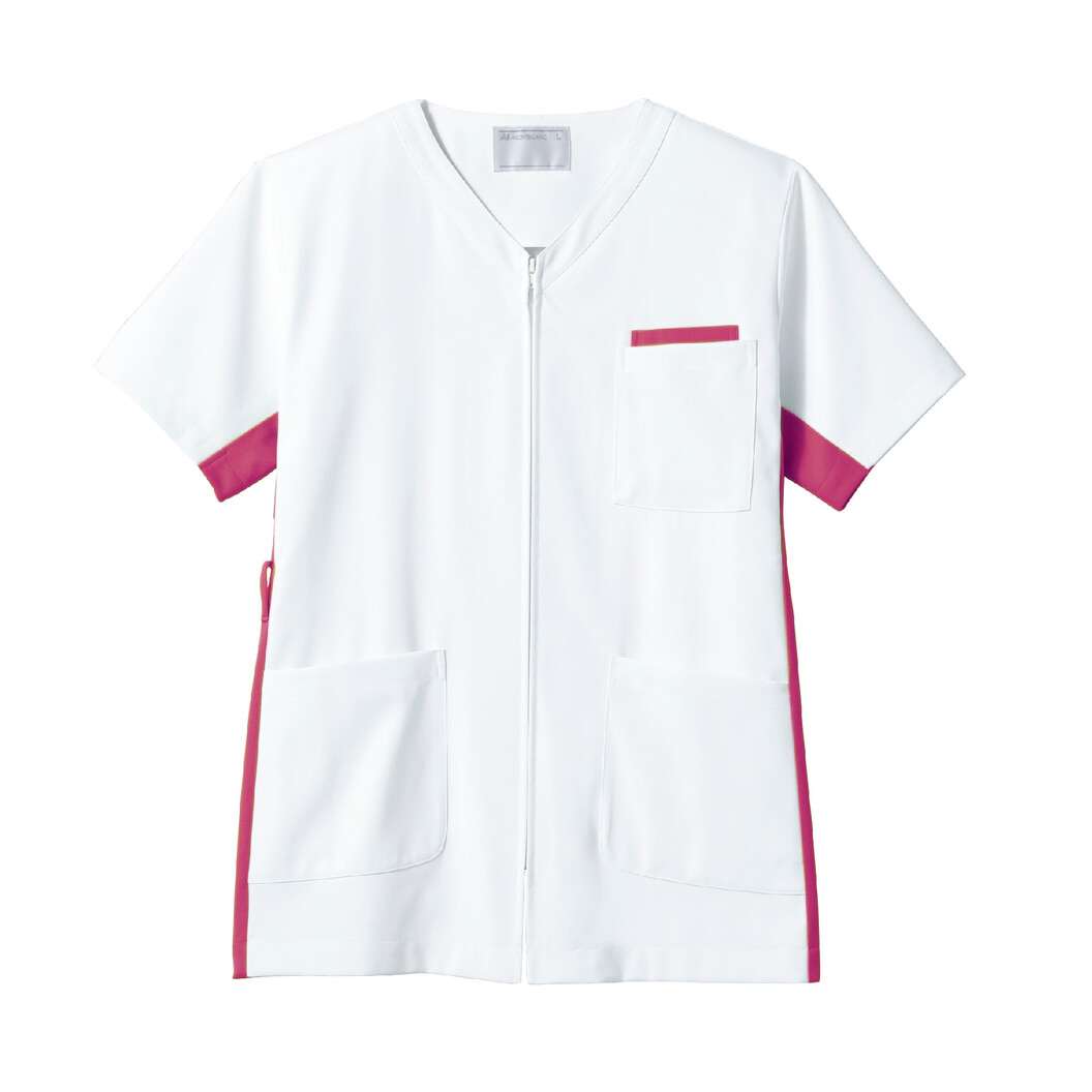 住商モンブランのスクラブです。 制菌・透け防止・吸汗速乾・制電・防汚加工を付与した、立体裁断で動きやすく、脇下のベンチレーションで快適です。