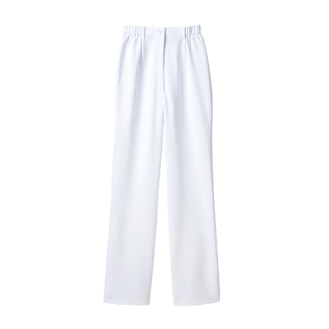 住商モンブランのメディカルパンツです。 制菌・透け防止・吸汗速乾・制電・防汚加工を付与した、太ももをほっそりみせてくれるスリムストレートタイプのパンツです。 さらりと優しい肌ざわりで、ベトつきやムレ感が少ない素材です。グリーン購入法対象商品。