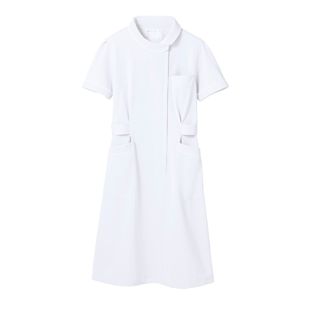 住商モンブランのメディカルワンピースです。 制菌・透け防止・制電・防汚加工を付与した、さりげなく光るホワイトパイピングがおしゃれなアイテムです。
