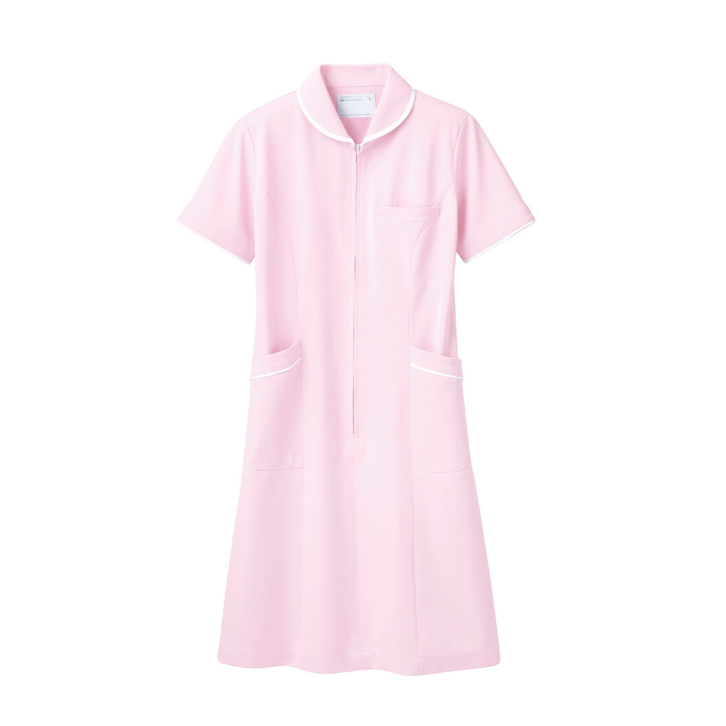 住商モンブランのメディカルワンピースです。 制菌・透け防止・制電・防汚加工を付与し、かわいいデザインに配色トリミングでシャープに。