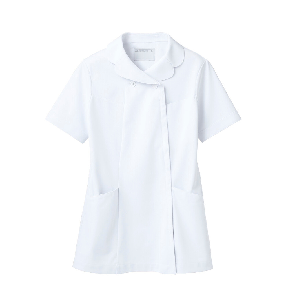 住商モンブランのメディカルジャケットです。 制菌・透け防止・制電・防汚加工を付与し、かわいい襟とダブルボタンで、印象に残る上品な装いのアイテムです。