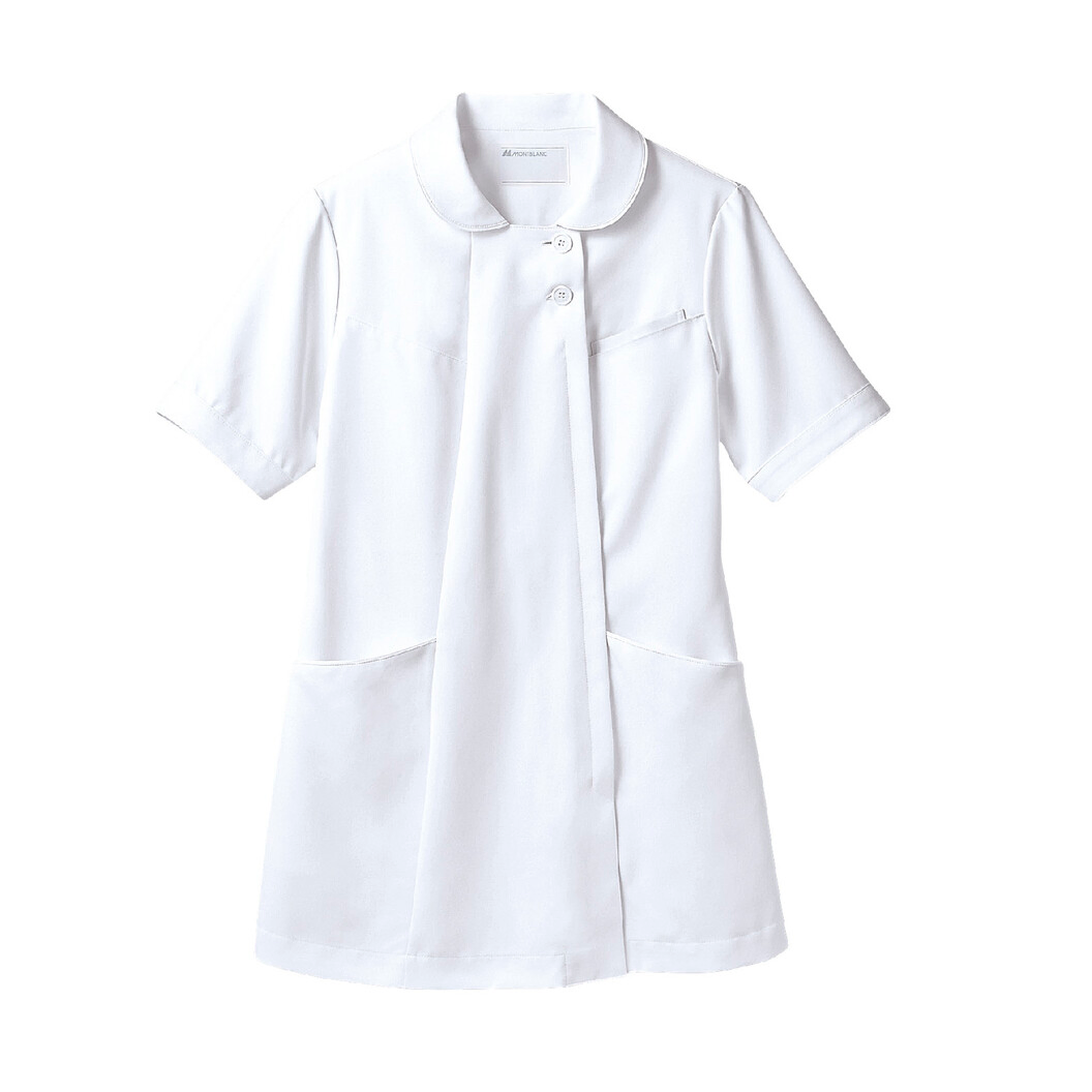 住商モンブランのメディカルジャケットです。 制菌・透け防止・吸汗速乾・制電・防汚加工を付与し、ほど良い大きさの襟と縦並びの2つボタンが品よく印象的なアイテムです。