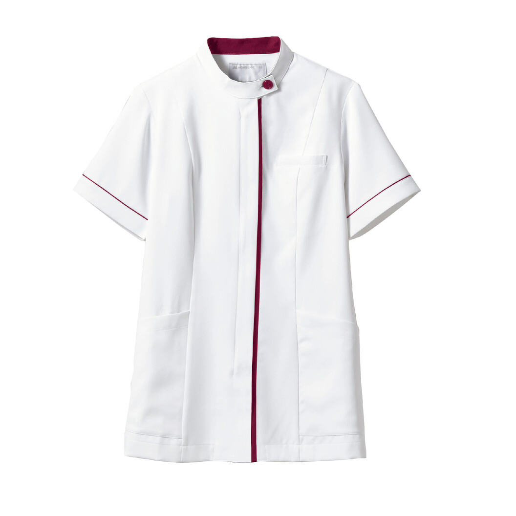 住商モンブランのケーシータイプのメディカルジャケットです。 制菌・透け防止・吸汗速乾・制電・防汚加工を付与し、タテのカラーラインで、スッキリ洗練された印象に。