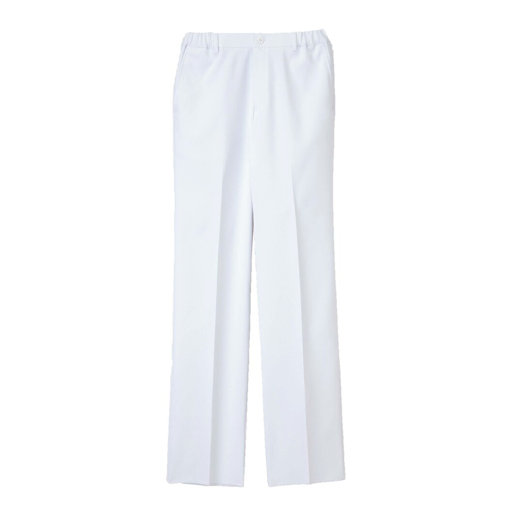 シルエットがすっきりしたノータックパンツです。ストレッチ性が豊かな素材を使用しているため快適な履き心地です。 特殊断面フルダル糸を使用し、高い防透け性能と吸汗速乾性を持っています。高い伸縮性による着心地の良さと動きやすさを持った素材です。特殊仕上により吸水、防汚効果を付加しています。業務用洗濯にも耐えうる形態安定素材です。