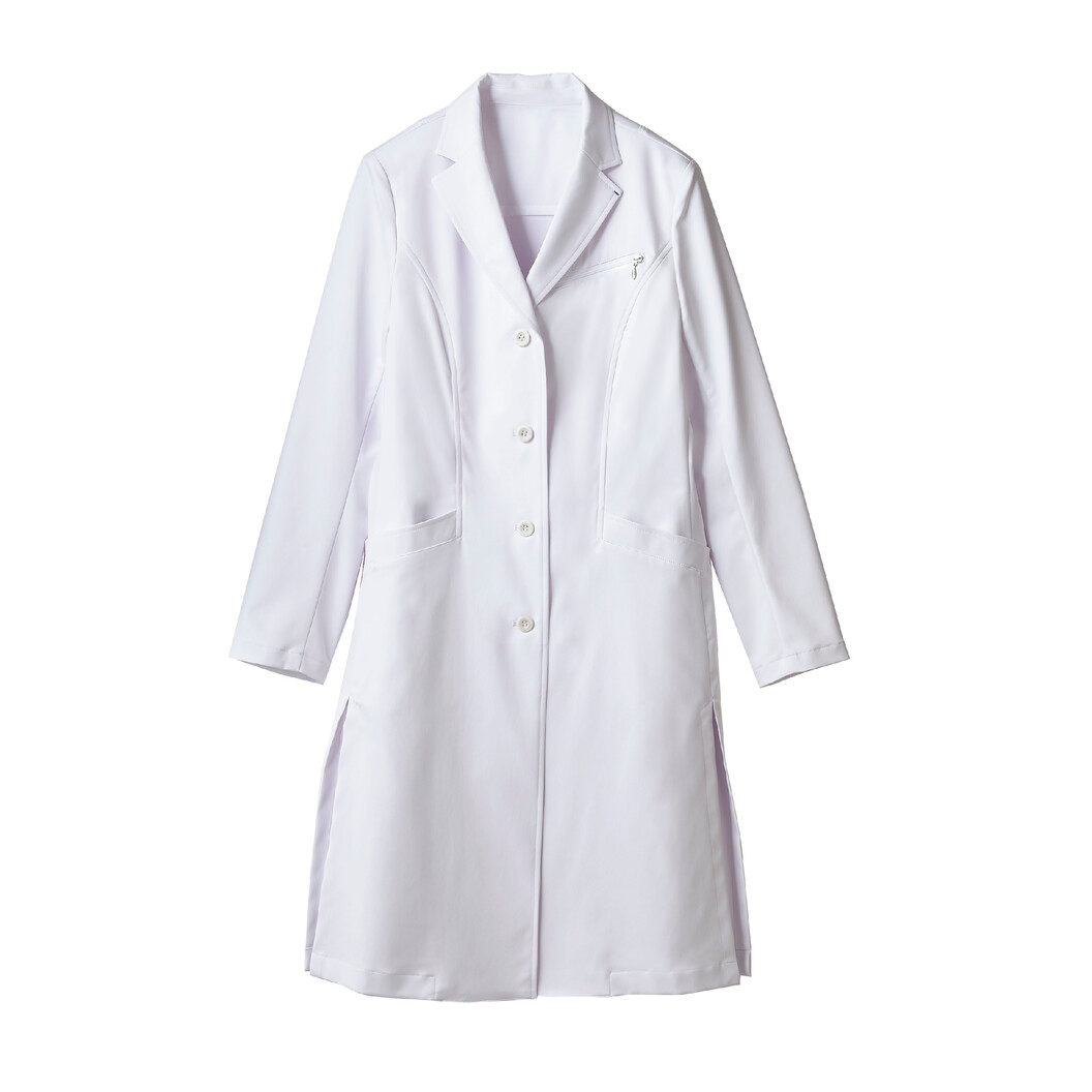 住商モンブランのドクターコートです。制菌・透け防止・制電・ストレッチ機能を付与した、「JUNKO KOSHINO」ブランド商品です。 シンプルなテーラードカラーのドクターコートは、素材感とディテールが決め手。 ハリのある素材と立体的なパターンで、着たとき、動いたときの美しさが際立ちます。