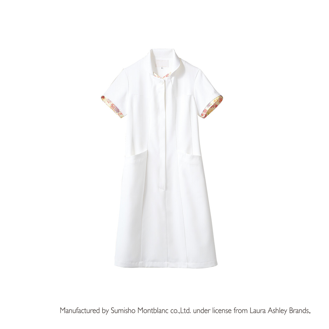 制菌・透け防止・吸汗速乾・制電・防汚加工を付与した、「LAURA ASHLEY」ブランドのワンピースです。 ラインが美しいワンピース、小ぶりの襟が気品と愛らしさを演出。 後ろにプリーツを入れたフェミニンなシルエットも魅力です。