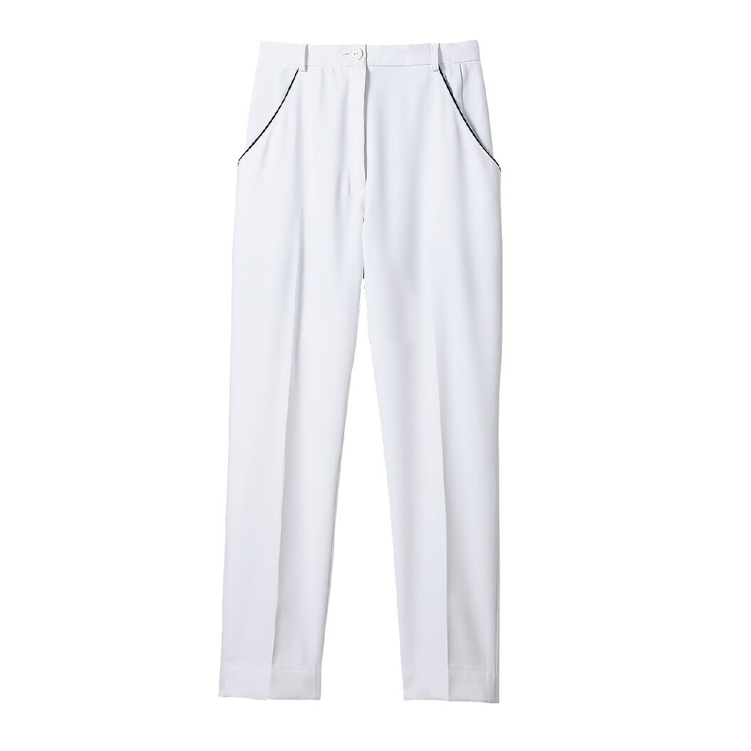 オサレカンパニーと住商モンブランのコラボレーションブランド「O.C.M.D」商品です。 テーパードシルエットがスッキリきれいなのパンツです。 両脇前ポケットは消毒ボトルなどをかけるのに便利なループ付きです。 両脇後ろポケットはポケット口を大きくし入れしやすい仕様になっています。 生地は、制菌・吸汗・制電・防汚機能付き。裾上げ済み。