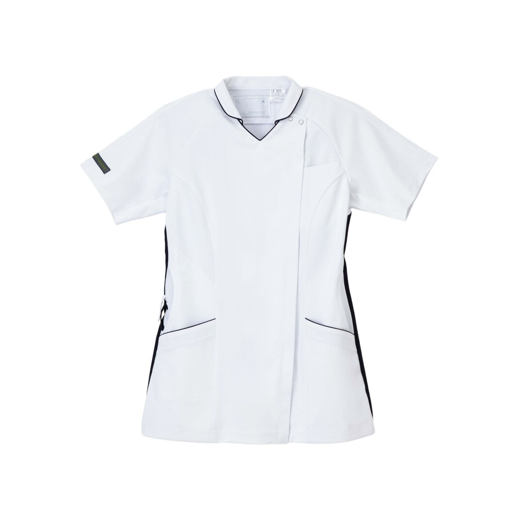 優れたストレッチ性と衣服内の適温性を備えた素材を使用し、デザイン面では白衣とスクラブの融合型をベ-スに腕の可動範囲を広げる脇のカットや、通気性をさらにUPさせるメッシュ仕様になっています。右脇ループは鍵やストラップコードなどを掛けられるWループ仕様になっています。 透け防止フルダルポリエステル糸使いにより、極めて高い透け防止効果があります。極めて高いストレッチ性が有ります。特殊な糸使いにより、肌に触れるとヒヤっとする接触冷感素材です。ニット素材のため、通気性があり、防皺性にも優れています。洗濯耐久性のある制菌加工を施し、清潔で快適に着用していただけます。着用時のまとわりつきや、パチパチ放電を低減させるために制電糸を使用しています。業務用洗濯にも耐えうる形態安定素材です。