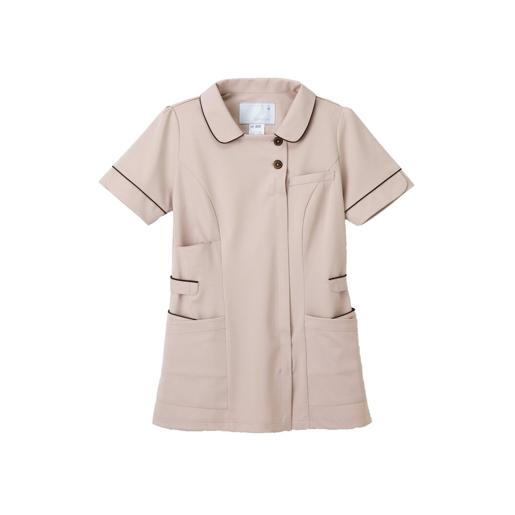 女性らしい衿元がやさしさを感じさせます。PHS用ポケットやキーループ、ダブルポケットなど機能面も充実しています。 透け防止フルダルポリエステル糸使いにより、極めて高い透け防止効果があります。極めて高いストレッチ性が有ります。特殊な糸使いにより、肌に触れるとヒヤっとする接触冷感素材です。ニット素材のため、通気性があり、防皺性にも優れています。洗濯耐久性のある制菌加工を施し、清潔で快適に着用していただけます。着用時のまとわりつきや、パチパチ放電を低減させるために制電糸を使用しています。業務用洗濯にも耐えうる形態安定素材です。