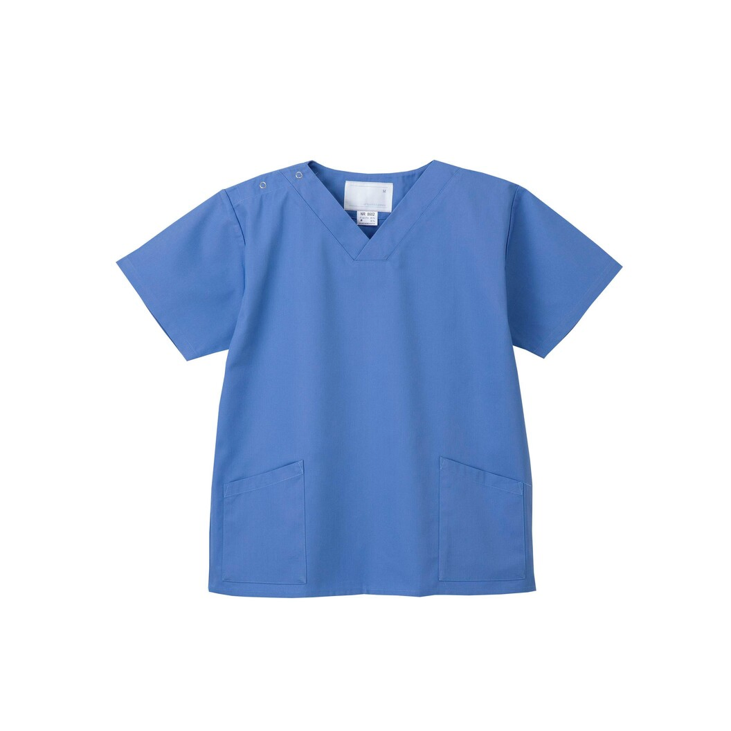 胸元が開きすぎないように、肩にドットボタン開きを付けました。男女兼用で幅広く着用できます。 しっかりとした綾組織で張り腰があり、安定感のある素材です。綿35%により吸汗性があります。