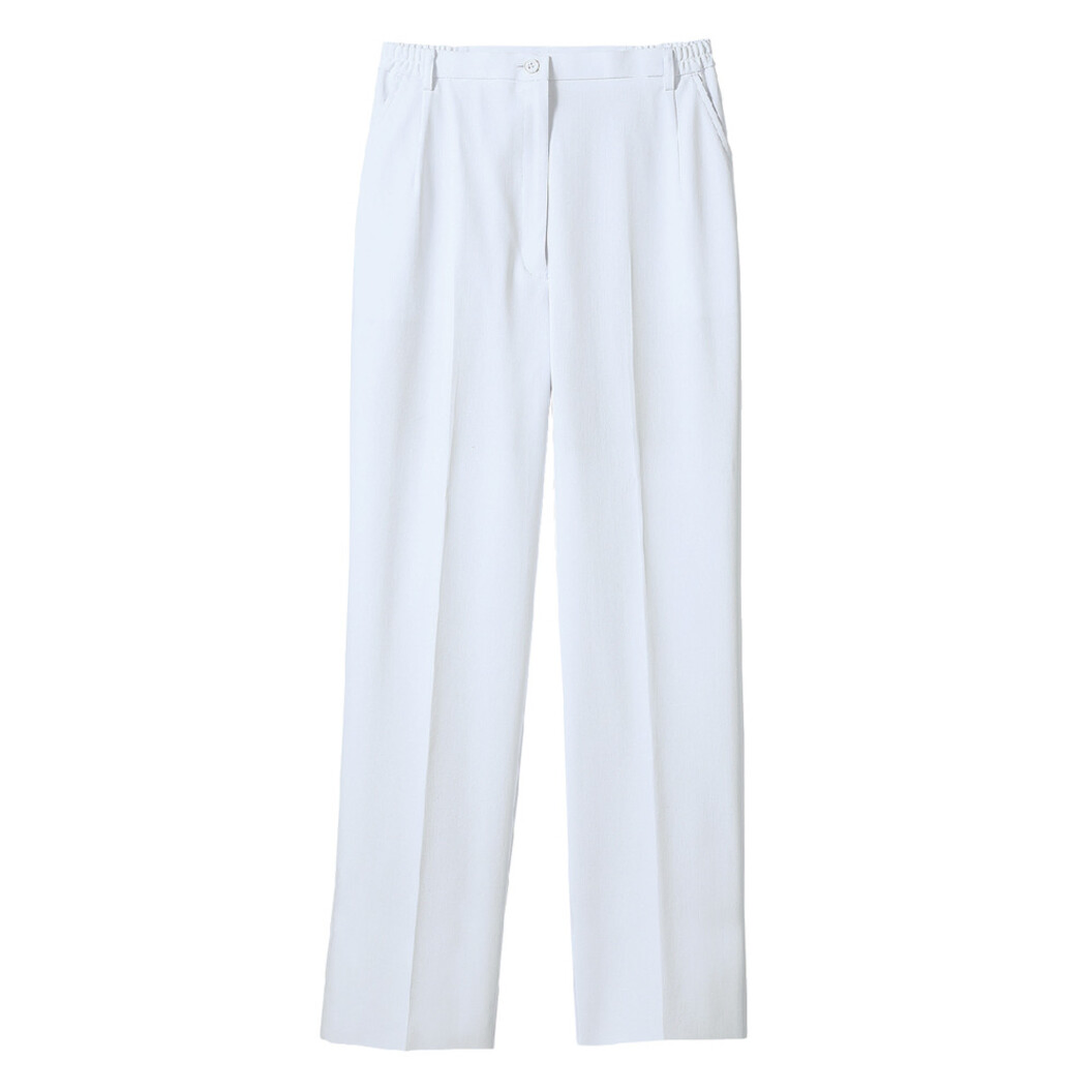 住商モンブランのレディスナースパンツ。人気のコンフォートスリム型仕様でゆとりを持たせた快適なはき心地とスッキリスマートなシルエットを両立。ウエスト部分はノータックの両脇ゴム仕様。パンツのヒップ部分に下着の透けをカバーする裏地付き。制菌加工、制電加工、防汚機能付き。