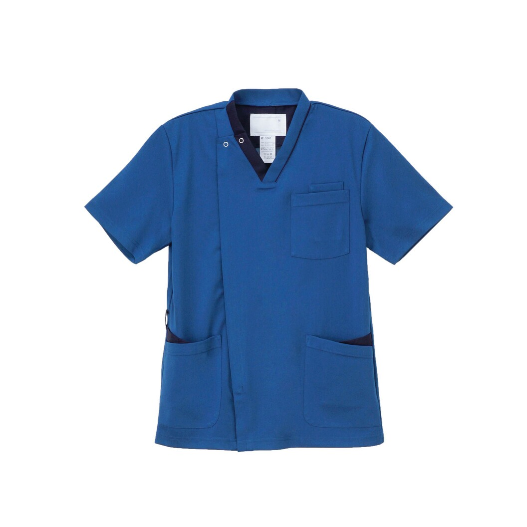 フロントファスナー開きの男性専用スクラブです。涼感素材のニットが快適な着心地を提供します。 生地に触れたときにひんやりする、接触冷感素材です。高い伸縮性を持ち、着心地の良さと動きやすさを提供します。特殊仕上により吸水、防汚効果を付加しています。業務用洗濯にも耐えうる形態安定素材です。