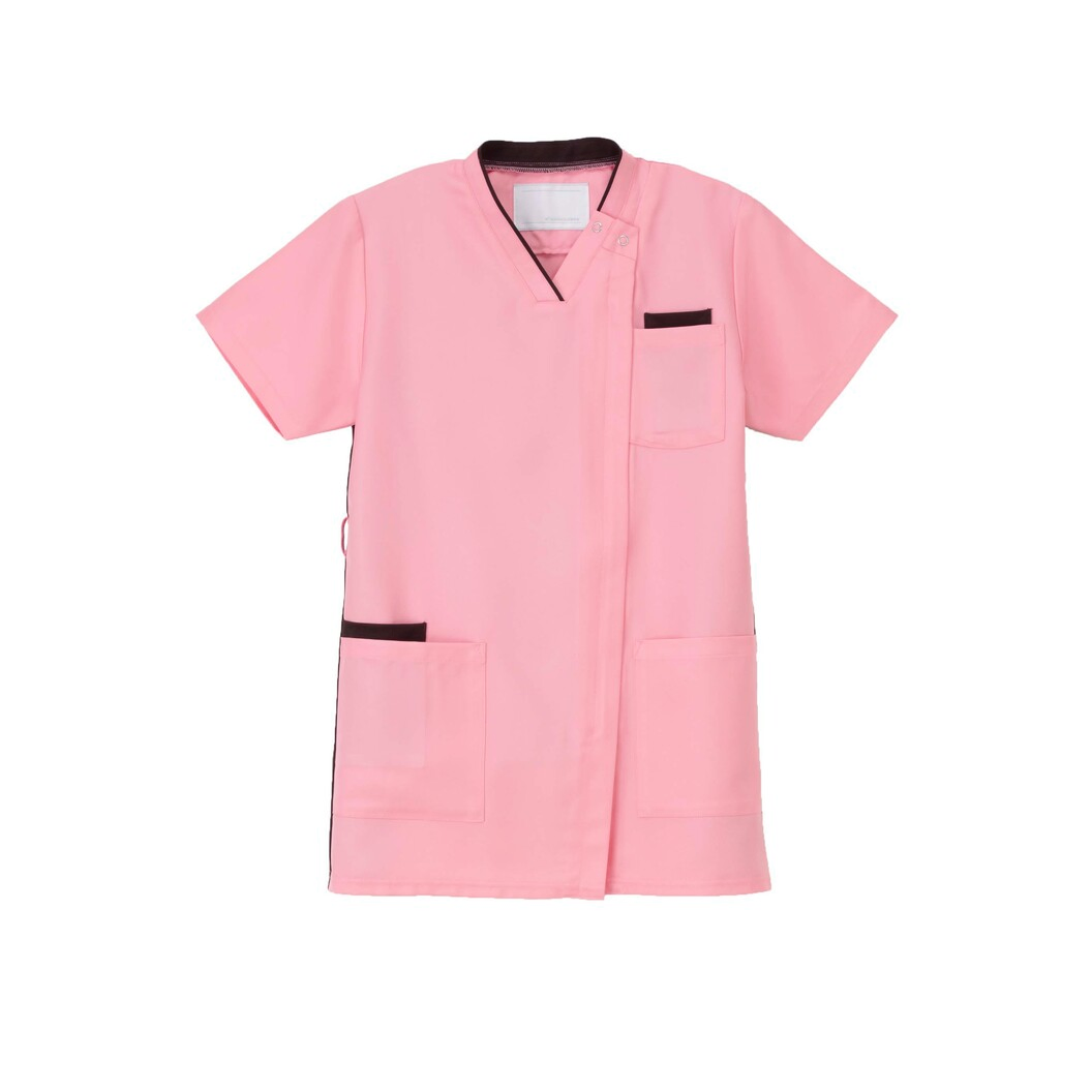 サイドファスナー開きの男女兼用スクラブです。バックスタイルの両サイドに配したニット素材が動きやすさと涼しさをご提供します。適度なゆとりのあるシルエットになっています。