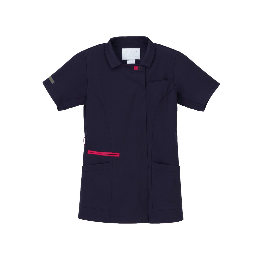 カラーチュニックという新しいアイテム。なめらかなタッチと涼感性、高ストレッチ性を併せ持つ高機能素材を使用しています。さらにエアーアームカットを搭載し涼しく動きやすいハイスペックアイテムです。 均一できめ細やかな美しい表面感としなやかでソフトなタッチを特徴としています。また上品な光沢と発色性が高級感を感じさせます。高い伸縮性を持ち、着心地の良さと動きやすさを提供します。特殊な糸使いにより、肌に触れるとヒヤっとする接触冷感素材です。ニット素材のため、通気性があり、防皺性にも優れています。特殊仕上により吸水、防汚効果があります。着用時のまとわりつきや、放電による不快感を低減させるために制電糸を使用しています。業務用洗濯にも耐えうる形態安定素材です。