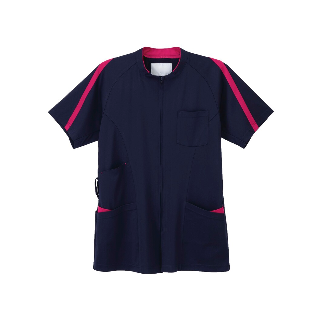 後ろ衿から肩袖口にかけて配色のラインを入れたスポーティな印象のユニセックスカラーチュニック。 なめらかなタッチと涼感性、高ストレッチ性を併せ持つ高機能素材を使用しています。 ハイネックの衿で肌の露出を控えました。 エアアームカットを搭載し涼しく動きやすいハイスペックアイテムです。 均一できめ細やかな美しい表面感としなやかでソフトなタッチを特徴としています。また上品な光沢と発色性が高級感を感じさせます。高い伸縮性を持ち、着心地の良さと動きやすさを提供します。特殊な糸使いにより、肌に触れるとヒヤっとする接触冷感素材です。ニット素材のため、通気性があり、防皺性にも優れています。特殊仕上により吸水、防汚効果があります。着用時のまとわりつきや、放電による不快感を低減させるために制電糸を使用しています。業務用洗濯にも耐えうる形態安定素材です。