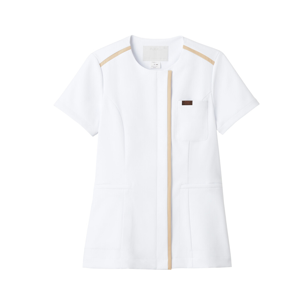 ラウンドネックがやさしく上品でやわらかな印象の男女兼用ジップスクラブ。細くて控えめな配色の切り替えはスタイリッシュで男女問わず着用いただけます。袖口を折り返すと配色で色が変わり、オシャレなポイントとして、また日勤夜勤を区別する目的でも活用可能。腰ポケットは従来品とは異なり、玉縁ポケットにすることで、他にはない洗練されたデザインになっています。ホワイトは美容クリニックなどのおもてなし向けとしてもオススメ。ストレッチ素材を使用し、快適な着心地の男女兼用スクラブです。