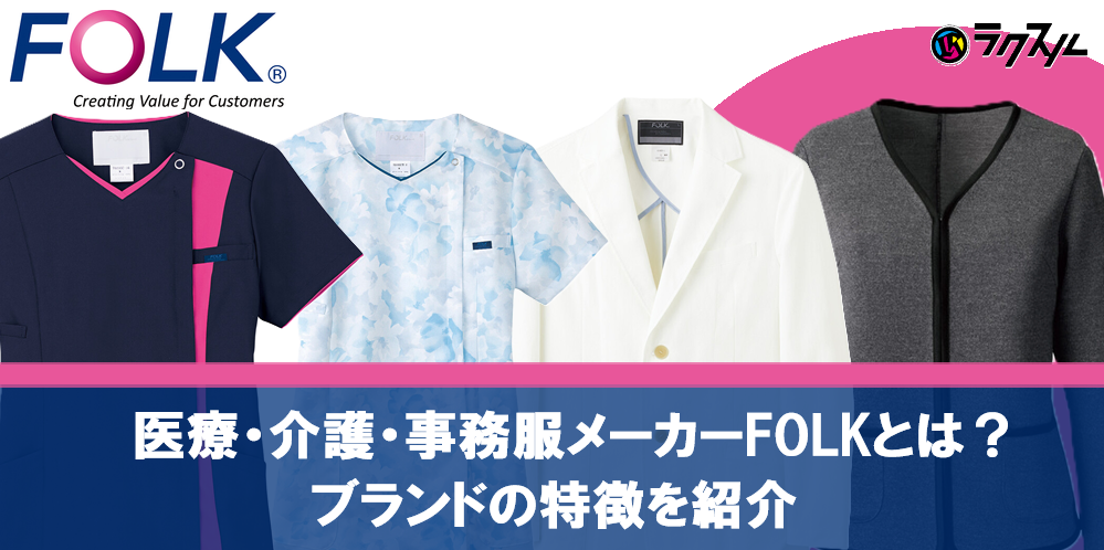 FOLK(フォーク)は医療・介護・事務におけるユニフォームのメーカーです。国内外の他社ブランドとのコラボや共同開発商品も多く、幅広い需要に応えています。