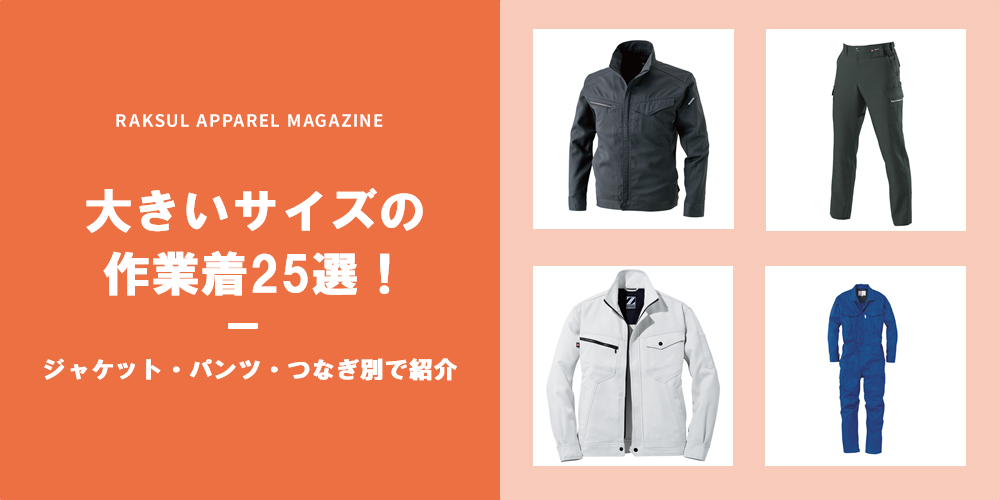 今回は、ジャケットは5L以上、パンツとつなぎはウエスト120cm以上のサイズを基準に、大きいサイズの作業服を計25点ご紹介しました。大きいサイズ専用ではなく、小さなサイズから展開している商品から選べば、スタッフの作業着を統一できます。