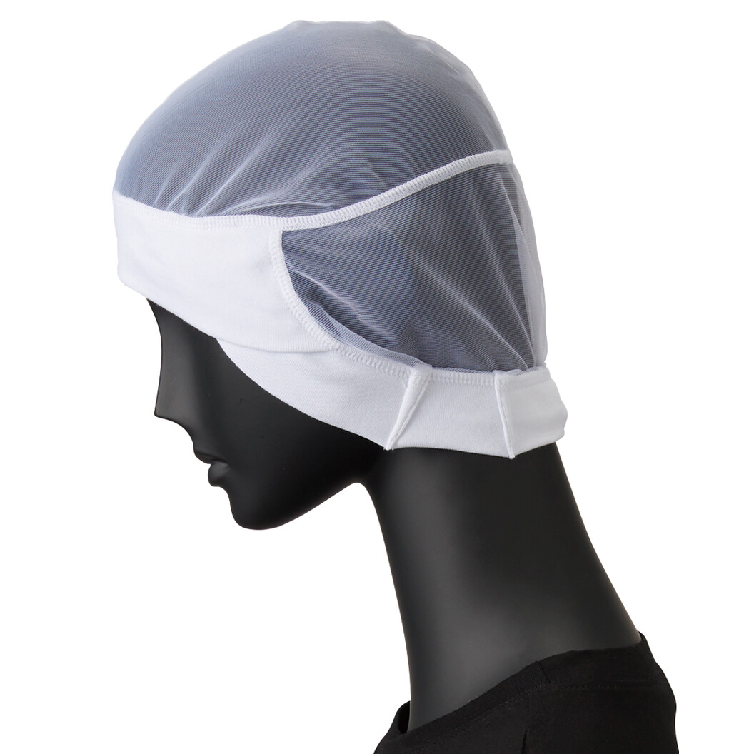 顔まわりにぴったりフィットする耳下留めのヘアネットです。メガネさし付き、帽子の下に着用することで毛髪落下をより厳重に防止します。