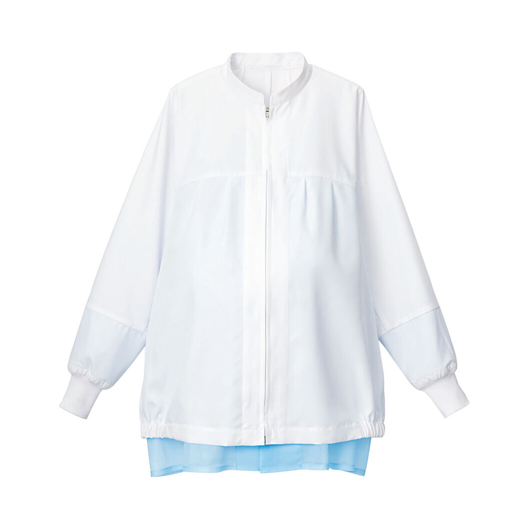 働く女性の悩みを解決するフェムテック商品から、マタニティ用長袖ジャンパーが登場。 ストレッチ性があり、妊娠初期~臨月まで快適にフィット。服のはみだしが一目でわかる、気づき仕様のブルーインナー。おなか周りにたっぷりゆとりをもたせるプリーツ入り。高い速乾性と生地裏の点タッチ設計でベトつきを軽減。凹凸のある織組織で多面的に汗や水分をキャッチ、素早く拡散・乾燥させ、快適な着心地を実現。異物混入を防ぐ仕様で、工場内の安全・安心をサポートするHACCP支援対応商品。異物を工場に持ち込ませないフードディフェンスに対応した、ノーポケット仕様。