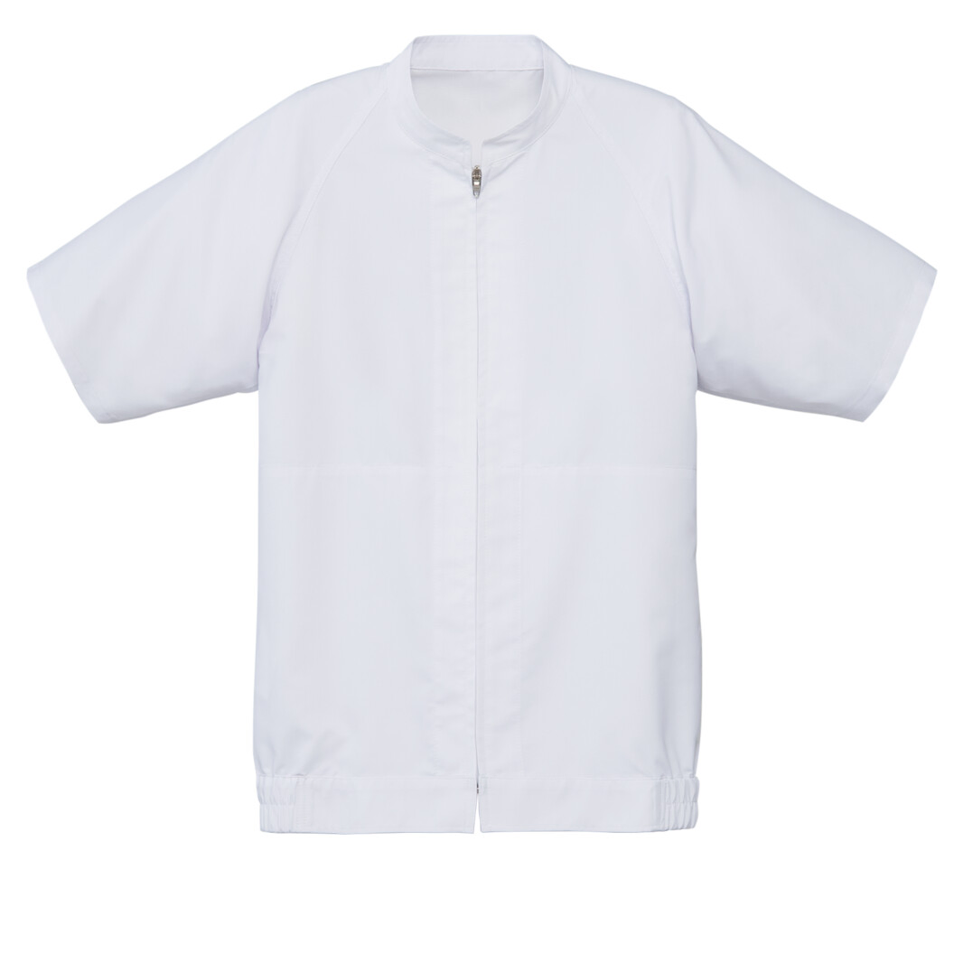 衛生白衣のカラー展開・半袖版です。弊社カラー展開の多いエプロン、パンツ、小物などのどれとも合わせられるような色展開が特徴です。工場から接客まで幅広く着用できることでサービスの巾が大きく広がります。生地も新しくなりました。少しのストレッチ、リサイクルポリエステル糸を一部使用し、制電糸、抗菌防臭、速乾機能はそのまま、裏側は点接触ですのでさらっと着こなせます。軽さもあり快適です。工業洗濯でも扱いやすくいつでも清潔に商品を保つことができます。