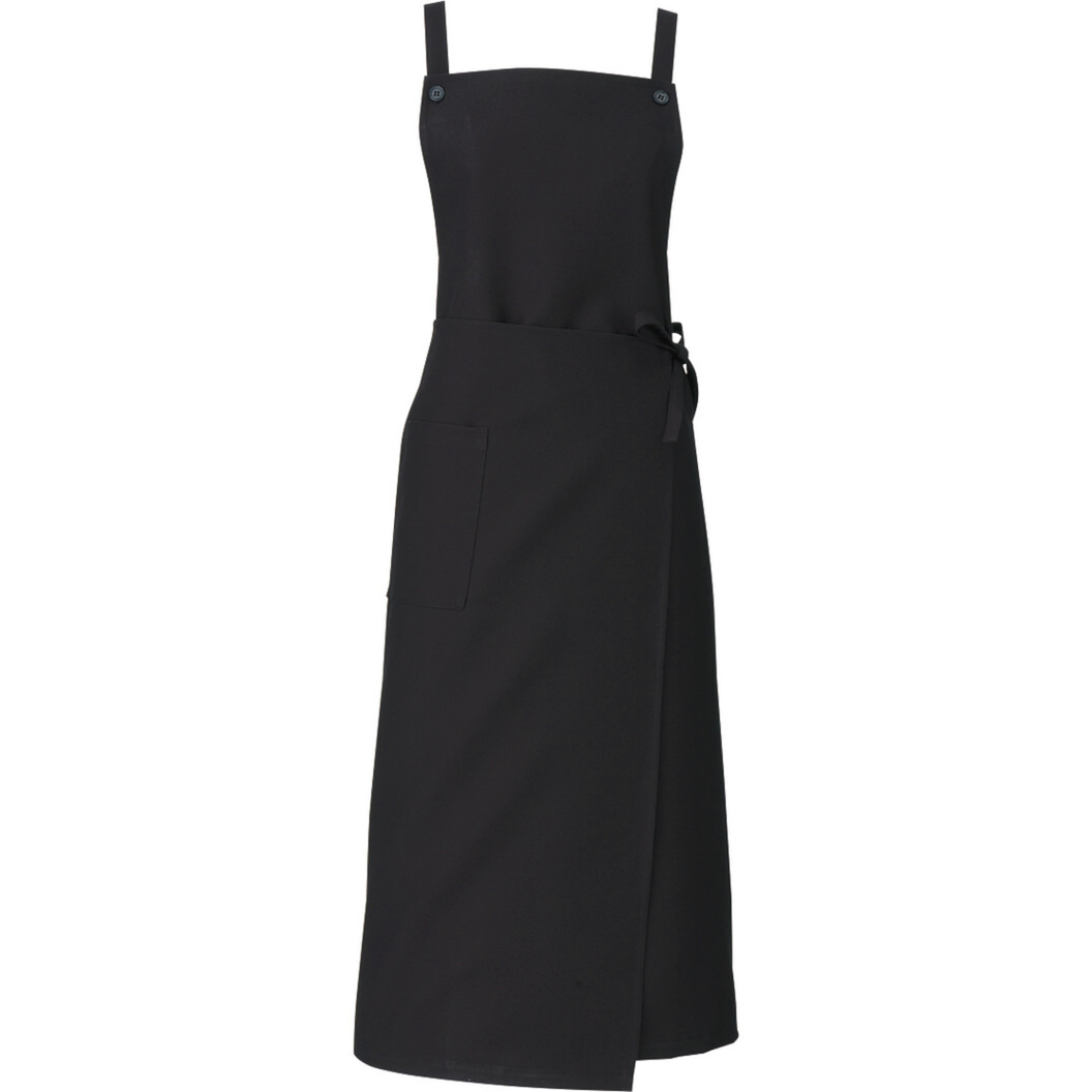 飲食のためのコーディネート スタイリッシュなドレスタイプ ゆったりと着られる前ダブルタイプのエプロンドレスです。 肩ヒモはボタンで長さ調節可能