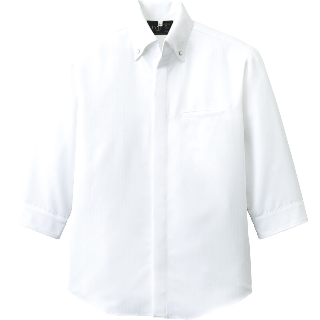 スピーディに脱ぎ着できるスナップボタン式。 ホールからキッチンまで、せわしいシーンに対応するデザインです。 シンプルで機能的なスナップボタンのコックシャツ