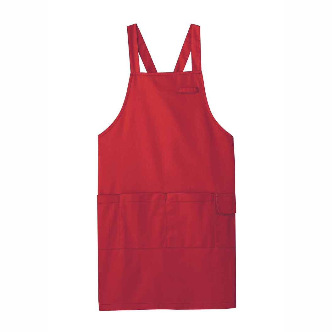 シンプルエプロンは、ポケットいっぱい多機能デザインです。 小道具なども入る大きめのポケット、貴重品を入れるのに便利なフラップポケット、携帯電話用内ポケットも付いています。 胸元にはネームループ付、ひもの交差部分に肩ずれ防止用ループ付です。
