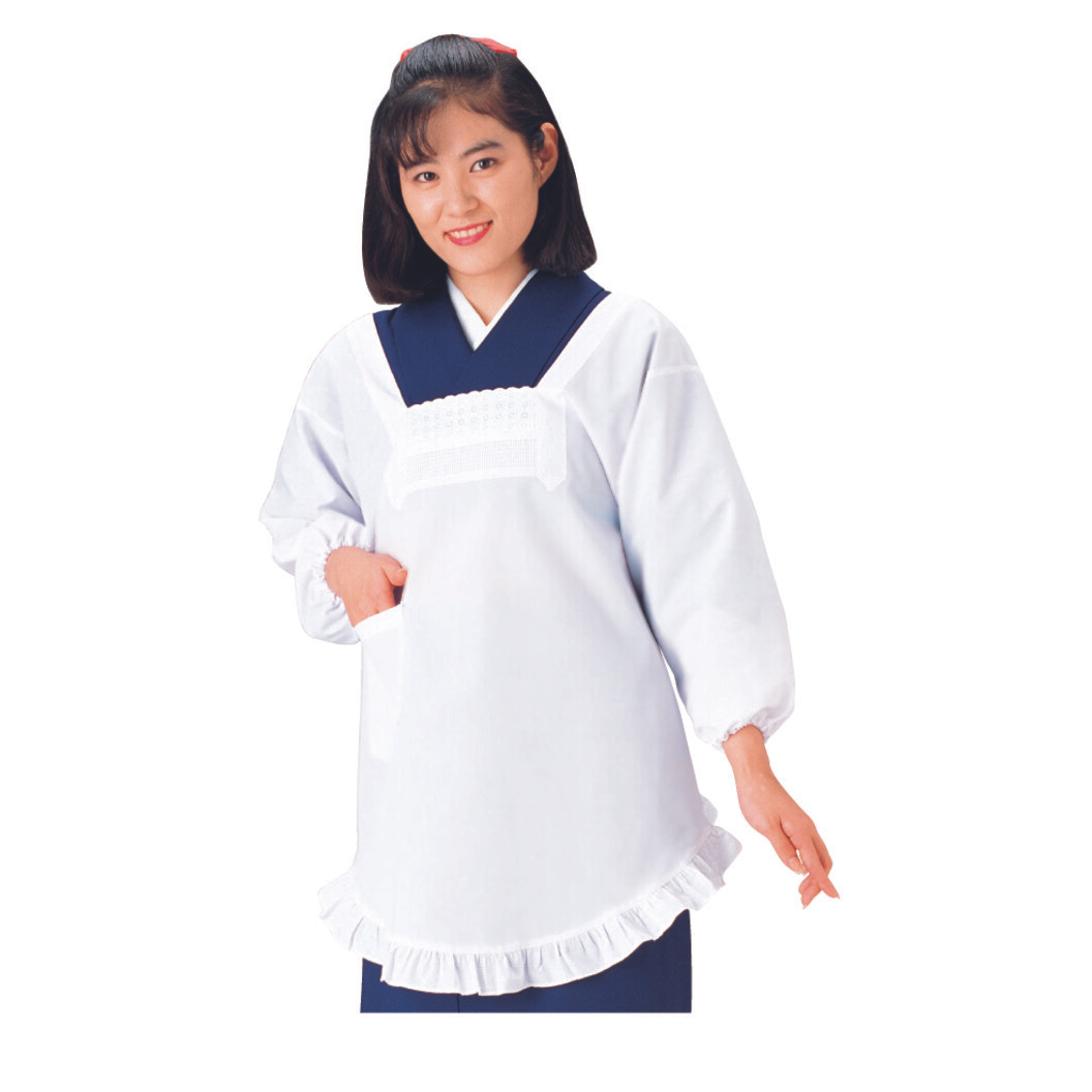 袖口ゴム入りのフリル付き割烹着です。