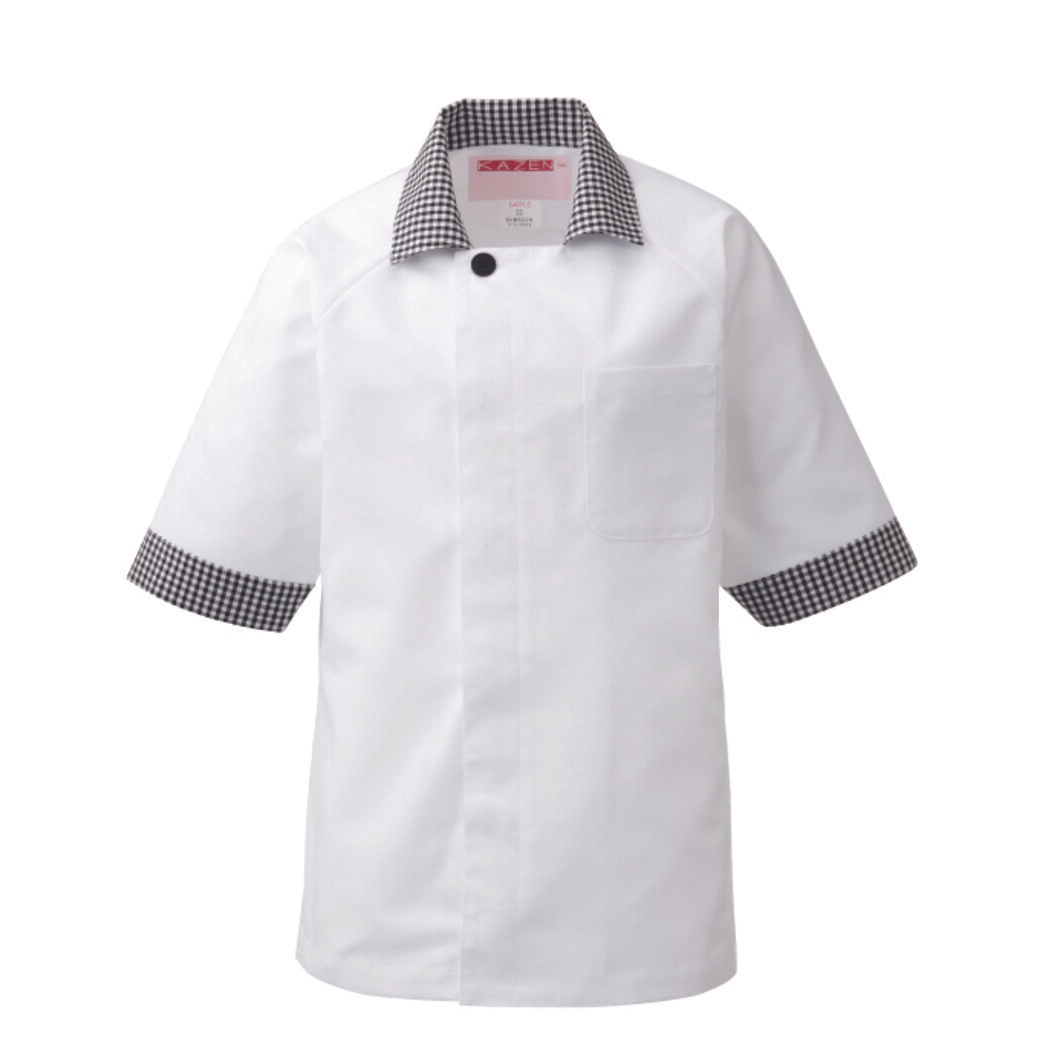 左胸ポケット付きの五分袖コックシャツです。