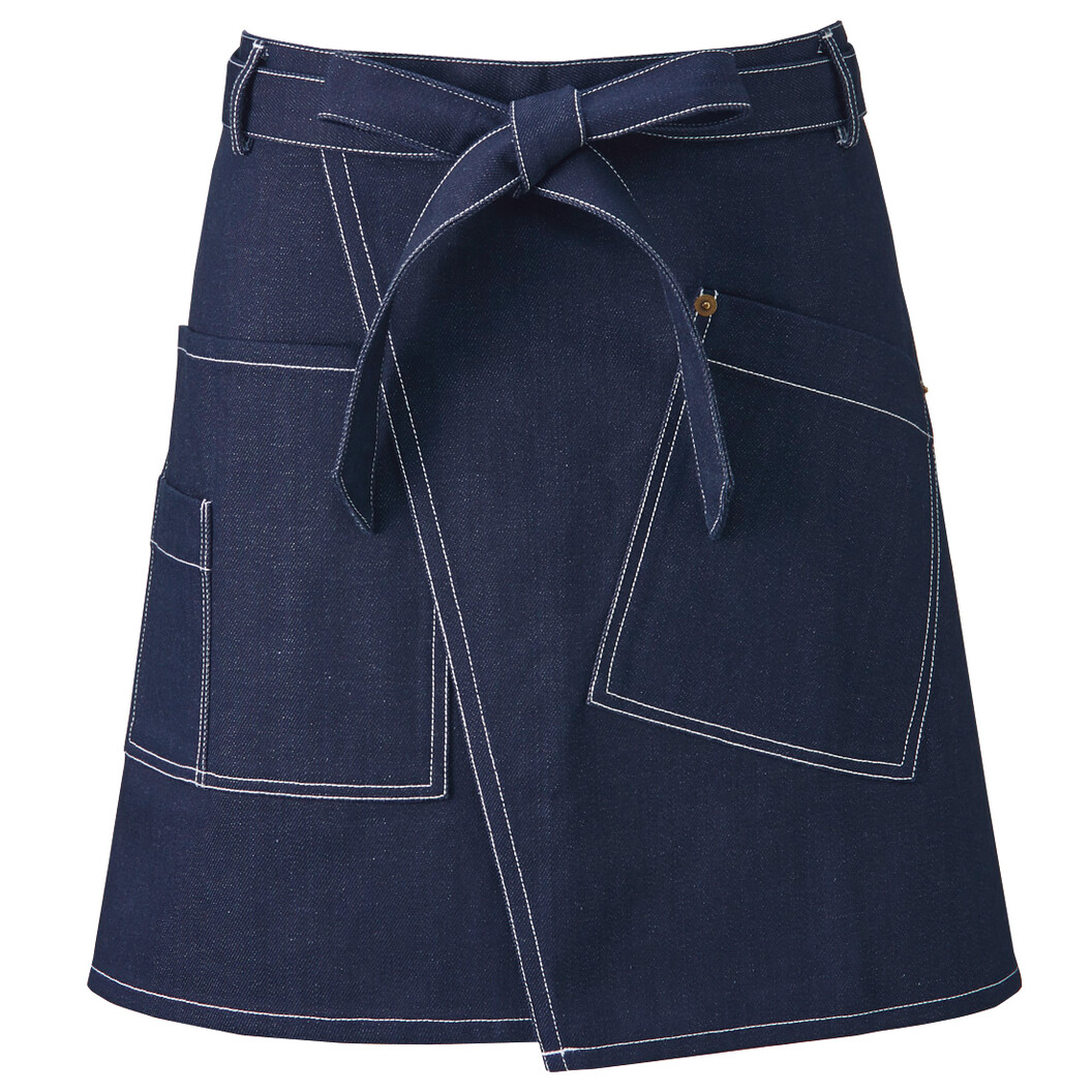自然体で、おしゃれで、機能的なショートエプロンです。 KAZENのデニム&ヒッコリー。